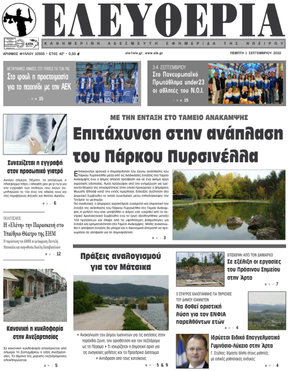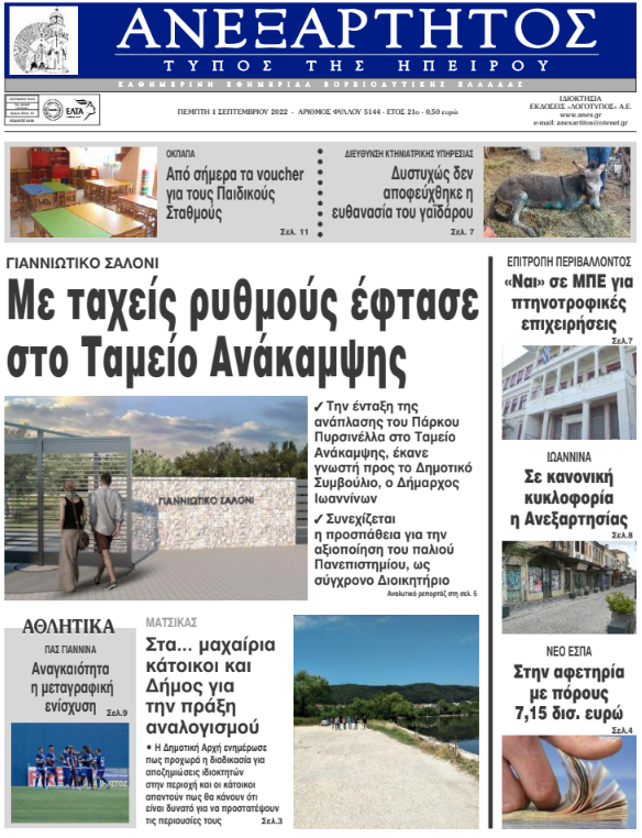 ΑρχικήTOP STORIES TOP STORIESΗΠΕΙΡΟΣ Τα πρωτοσέλιδα των γιαννιώτικων εφημερίδων 01.09.2022 215 FacebookTwitterWhatsAppEmailΤυπώνωViber Διαβάστε στα πρωτοσέλιδα των γιαννιώτικων εφημερίδων της Πέμπτης 1 Σεπτεμβρίου TagsΓΙΑΝΝΙΩΤΙΚΕΣ ΕΦΗΜΕΡΙΔΕΣΠΡΩΤΟΣΕΛΙΔΑ FacebookTwitterWhatsAppEmailΤυπώνωViber Προηγούμενο άρθροΞεκινούν αύριο οι εγγραφές των επιτυχόντων στα ΑΕΙΕπόμενο άρθροΑντίδραση κατοίκων του Μάτσικα στην ανακοίνωση του Δήμου ΣΧΕΤΙΚΑ ΑΡΘΡΑ Τα πρωτοσέλιδα των γιαννιώτικων εφημερίδων TOP STORIES 05.12.2025 Τα πρωτοσέλιδα των γιαννιώτικων εφημερίδων ΗΠΕΙΡΟΣ 04.12.2025 Τα πρωτοσέλιδα των γιαννιώτικων εφημερίδων ΗΠΕΙΡΟΣ 03.12.2025 Τα πρωτοσέλιδα των γιαννιώτικων εφημερίδων TOP STORIES 02.12.2025 Τα πρωτοσέλιδα των γιαννιώτικων εφημερίδων ΗΠΕΙΡΟΣ 29.11.2025 Τα πρωτοσέλιδα των γιαννιώτικων εφημερίδων ΗΠΕΙΡΟΣ 28.11.2025 ΣΤΗΝ ΙΔΙΑ ΚΑΤΗΓΟΡΙΑ Δυναμώνει η φωνή των αγροτών- Συλλαλητήριο στον κόμβο του αεροδρομίου (βίντεο) ΗΠΕΙΡΟΣ 07.12.2025 ΑΡΤΑ -Διακοπές κυκλοφορίας λόγω των LED ΗΠΕΙΡΟΣ 07.12.2025 Φιάσκο για την ΕΛ.ΑΣ η διαφυγή των ληστών στην Αλβανία ΗΠΕΙΡΟΣ 05.12.2025 Χρηματοδότηση 93.000€ στα ΤΟΕΒ Αράχθου και Λούρου ΗΠΕΙΡΟΣ 05.12.2025 Τι ισχύει για το Δώρο Χριστουγέννων στους μισθωτούς του ιδιωτικού τομέα TOP STORIES 05.12.2025 Ηγουμενίτσα: Δύο συλλήψεις για προώθηση παράτυπων μεταναστών ΗΠΕΙΡΟΣ 05.12.2025 ΜΗ ΧΑΣΕΤΕ Δυναμώνει η φωνή των αγροτών- Συλλαλητήριο στον κόμβο του αεροδρομίου (βίντεο) «Ασπίδα κατά της παραπληροφόρησης ο τοπικός Τύπος» Φιάσκο για την ΕΛ.ΑΣ η διαφυγή των ληστών στην Αλβανία Τι ισχύει για το Δώρο Χριστουγέννων στους μισθωτούς του ιδιωτικού τομέα Έντονες αντιδράσεις για τη μεταφορά ζωικών αποβλήτων ΔΗΜΟΦΙΛΗ Μ. ΤΖΟΥΦΗ -“Αναγκαίο ένα σύγχρονο και δημοκρατικό πλαίσιο βιοηθικής για την τεχνητή νοημοσύνη “ Περού: Δέκα φοιτητές νεκροί από φωτιά σε εστιατόριο Δυναμώνει η φωνή των αγροτών- Συλλαλητήριο στον κόμβο του αεροδρομίου (βίντεο) ΕΞΩΔΙΚΑΣΤΙΚΟΣ ΜΗΧΑΝΙΣΜΟΣ -Νέο ιστορικό ρεκόρ στις ρυθμίσεις οφειλών του Νοεμβρίου ΑΡΤΑ -Διακοπές κυκλοφορίας λόγω των LED