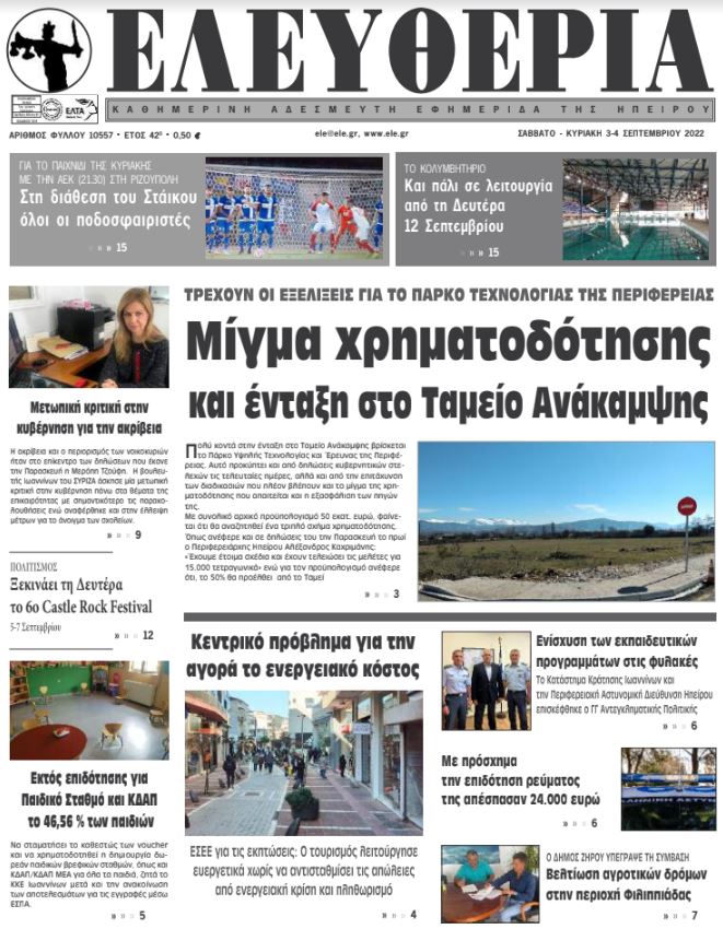 ΑρχικήTOP STORIES TOP STORIESΗΠΕΙΡΟΣ Τα πρωτοσέλιδα των γιαννιώτικων εφημερίδων 03.09.2022 117 FacebookTwitterWhatsAppEmailΤυπώνωViber Διαβάστε στα πρωτοσέλιδα των γιαννιώτικων εφημερίδων 3-4 Σεπτεμβρίου TagsΓΙΑΝΝΙΩΤΙΚΕΣ ΕΦΗΜΕΡΙΔΕΣΠΡΩΤΟΣΕΛΙΔΑ FacebookTwitterWhatsAppEmailΤυπώνωViber Προηγούμενο άρθροΔίπλωμα οδήγησης στο κινητό – Ποια έγγραφα παίρνουν σειράΕπόμενο άρθροΚαι πάλι σε λειτουργία από τη Δευτέρα 12 Σεπτεμβρίου ΣΧΕΤΙΚΑ ΑΡΘΡΑ Τα πρωτοσέλιδα των γιαννιώτικων εφημερίδων TOP STORIES 08.11.2025 Τα πρωτοσέλιδα των γιαννιώτικων εφημερίδων ΗΠΕΙΡΟΣ 07.11.2025 Τα πρωτοσέλιδα των γιαννιώτικων εφημερίδων ΗΠΕΙΡΟΣ 06.11.2025 Τα πρωτοσέλιδα των γιαννιώτικων εφημερίδων ΗΠΕΙΡΟΣ 05.11.2025 Τα πρωτοσέλιδα των γιαννιώτικων εφημερίδων ΗΠΕΙΡΟΣ 04.11.2025 Τα πρωτοσέλιδα των γιαννιώτικων εφημερίδων TOP STORIES 01.11.2025 ΣΤΗΝ ΙΔΙΑ ΚΑΤΗΓΟΡΙΑ Στις 22 Νοεμβρίου η τελετή ενθρόνισης του Μητροπολίτη Κόνιτσας ΗΠΕΙΡΟΣ 09.11.2025 Τα πρωτοσέλιδα των γιαννιώτικων εφημερίδων TOP STORIES 08.11.2025 Μαθητές του 5ου Γυμνασίου Ιωαννίνων στην κορυφή του Μιτσικελίου ΗΠΕΙΡΟΣ 07.11.2025 Επίτιμος Διδάκτορας του Τμήματος Φιλολογίας ο Γιώργος Κεχαγιόγλου ΗΠΕΙΡΟΣ 07.11.2025 Οι ναυαγοσωστικές δαπάνες «πνίγουν» τους δήμους ΗΠΕΙΡΟΣ 07.11.2025 Ενημερωτική ημερίδα στα Ιωάννινα για τη δωρεά και μεταμόσχευση οργάνων ΗΠΕΙΡΟΣ 07.11.2025 ΜΗ ΧΑΣΕΤΕ Τα πρωτοσέλιδα των γιαννιώτικων εφημερίδων Οι ναυαγοσωστικές δαπάνες «πνίγουν» τους δήμους Έκτακτο δελτίο επιδείνωσης από την ΕΜΥ – Πού θα βρέχει το επόμενο τριήμερο Μπαλωθιές τέλος στην Κρήτη – Τα μέτρα για την παράνομη οπλοκατοχή Χωρίς πινακίδες παραμένουν χιλιάδες δίκυκλα ΔΗΜΟΦΙΛΗ Με αυτόματο τρόπο ο Προσωπικός Αριθμός Στις 22 Νοεμβρίου η τελετή ενθρόνισης του Μητροπολίτη Κόνιτσας Λευκάδα: Άνδρας καταδικάστηκε σε φυλάκιση για επίθεση στην πρώην σύντροφό του ΑΠΟ 14 ΝΟΕΜΒΡΙΟΥ -Ξεκινούν οι αιτήσεις για την «Πρώιμη Παιδική Παρέμβαση»
