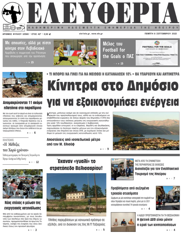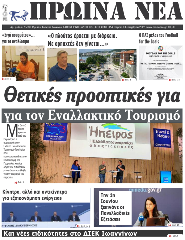 ΑρχικήΕΙΔΗΣΕΙΣΗΠΕΙΡΟΣ ΗΠΕΙΡΟΣ Τα πρωτοσέλιδα των γιαννιώτικων εφημερίδων 08.09.2022 168 FacebookTwitterWhatsAppEmailΤυπώνωViber Διαβάστε στα πρωτοσέλιδα των γιαννιώτικων εφημερίδων της Πέμπτης 8 Σεπτεμβρίου TagsΓΙΑΝΝΙΩΤΙΚΕΣ ΕΦΗΜΕΡΙΔΕΣΠΡΩΤΟΣΕΛΙΔΑ FacebookTwitterWhatsAppEmailΤυπώνωViber Προηγούμενο άρθροΒοιωτία: Νεκρός 16χρονος που είχε πάει για ψάρεμα με φίλους τουΕπόμενο άρθροΠροβλήματα από αυξημένα τροχαία ατυχήματα ΣΧΕΤΙΚΑ ΑΡΘΡΑ Τα πρωτοσέλιδα των γιαννιώτικων εφημερίδων TOP STORIES 19.11.2025 Τα πρωτοσέλιδα των γιαννιώτικων εφημερίδων ΗΠΕΙΡΟΣ 18.11.2025 Τα πρωτοσέλιδα των γιαννιώτικων εφημερίδων ΗΠΕΙΡΟΣ 15.11.2025 Τα πρωτοσέλιδα των γιαννιώτικων εφημερίδων ΗΠΕΙΡΟΣ 14.11.2025 Τα πρωτοσέλιδα των γιαννιώτικων εφημερίδων ΗΠΕΙΡΟΣ 13.11.2025 Τα πρωτοσέλιδα των γιαννιώτικων εφημερίδων ΗΠΕΙΡΟΣ 12.11.2025 ΣΤΗΝ ΙΔΙΑ ΚΑΤΗΓΟΡΙΑ Αντλήσεις υδάτων και κλειστοί δρόμοι στη Θεσπρωτία ΗΠΕΙΡΟΣ 19.11.2025 Ζημιές σε ηλεκτρικές συσκευές από τον κεραυνό που έπεσε σε στέγη ΗΠΕΙΡΟΣ 19.11.2025 Επίσκεψη μελών του κινήματος ΝΙΚΗΣ στη Διεύθυνση Δευτεροβάθμιας Εκπαίδευσης ΗΠΕΙΡΟΣ 19.11.2025 Ισχυρή κακοκαιρία στην Ήπειρο – Ζημιές, κατολισθήσεις και ρεκόρ βροχόπτωσης ΗΠΕΙΡΟΣ 19.11.2025 Στην Ήπειρο τα μεγαλύτερα ύψη βροχής TOP STORIES 19.11.2025 ΑΔΕΔΥ Ιωαννίνων: Τα αποτελέσματα των εκλογών για τη νέα Εκτελεστική Γραμματεία ΗΠΕΙΡΟΣ 19.11.2025 ΜΗ ΧΑΣΕΤΕ Αντλήσεις υδάτων και κλειστοί δρόμοι στη Θεσπρωτία Ζημιές σε ηλεκτρικές συσκευές από τον κεραυνό που έπεσε σε στέγη Στην Ήπειρο τα μεγαλύτερα ύψη βροχής Νέες ρυθμίσεις για υπερχρεωμένους οφειλέτες, voucher για πρόληψη της οικονομικής κατάρρευσης Στο επίκεντρο ο ρόλος των νοσηλευτών ΔΗΜΟΦΙΛΗ Κάλεσμα Σιόντη για στήριξη στον ΠΑΣ εν όψει Μακεδονικού Τα πρωτοσέλιδα των γιαννιώτικων εφημερίδων Νέες ρυθμίσεις για υπερχρεωμένους οφειλέτες, voucher για πρόληψη της οικονομικής κατάρρευσης Ο Κυριάκος Πιερρακάκης υποψήφιος για την προεδρία του Eurogroup Το Πωγώνι φωτίζεται στο φως του κινηματογράφου