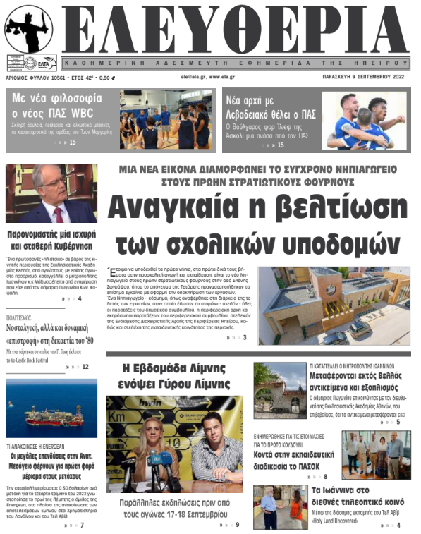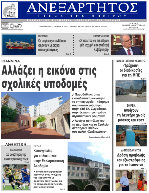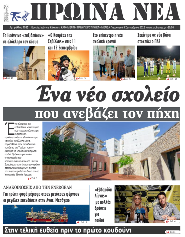 Διαβάστε στα πρωτοσέλιδα των γιαννιώτικων εφημερίδων της Παρασκευής 9 Σεπτεμβρίου