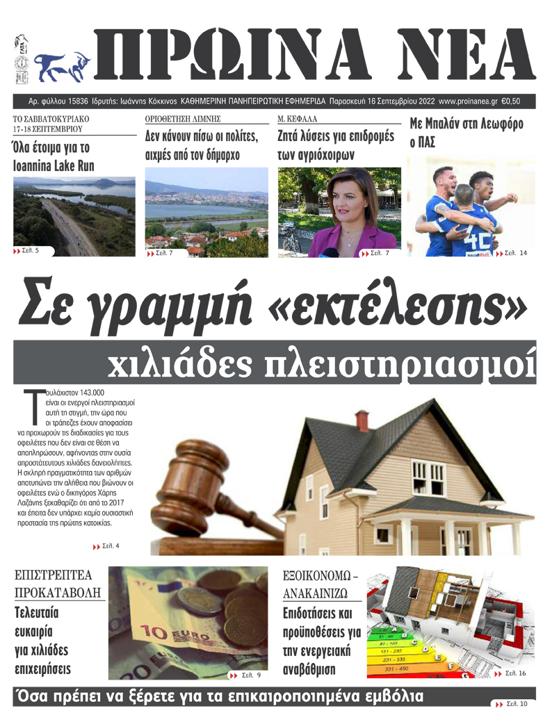 ΑρχικήTOP STORIES TOP STORIESΗΠΕΙΡΟΣ Τα πρωτοσέλιδα των γιαννιώτικων εφημερίδων 16.09.2022 166 FacebookTwitterWhatsAppEmailΤυπώνωViber Διαβάστε στα πρωτοσέλιδα των γιαννιώτικων εφημερίδων της Παρασκευής 16 Σεπτεμβρίου TagsΓΙΑΝΝΙΩΤΙΚΕΣ ΕΦΗΜΕΡΙΔΕΣΠΡΩΤΟΣΕΛΙΔΑ FacebookTwitterWhatsAppEmailΤυπώνωViber Προηγούμενο άρθρο«Να σπάσουν τα 25αρια και 27αρια τμήματα στα σχολεία»Επόμενο άρθροΛονδίνο: Επίθεση με μαχαίρι στο κέντρο της πόλης – 2 αστυνομικοί στο νοσοκομείο ΣΧΕΤΙΚΑ ΑΡΘΡΑ Τα πρωτοσέλιδα των γιαννιώτικων εφημερίδων TOP STORIES 05.12.2025 Τα πρωτοσέλιδα των γιαννιώτικων εφημερίδων ΗΠΕΙΡΟΣ 04.12.2025 Τα πρωτοσέλιδα των γιαννιώτικων εφημερίδων ΗΠΕΙΡΟΣ 03.12.2025 Τα πρωτοσέλιδα των γιαννιώτικων εφημερίδων TOP STORIES 02.12.2025 Τα πρωτοσέλιδα των γιαννιώτικων εφημερίδων ΗΠΕΙΡΟΣ 29.11.2025 Τα πρωτοσέλιδα των γιαννιώτικων εφημερίδων ΗΠΕΙΡΟΣ 28.11.2025 ΣΤΗΝ ΙΔΙΑ ΚΑΤΗΓΟΡΙΑ Ηγουμενίτσα: Δύο συλλήψεις για προώθηση παράτυπων μεταναστών ΗΠΕΙΡΟΣ 05.12.2025 Κοινό μέτωπο για την προστασία του ΧΥΤΥ Βλαχέρνας και της λίμνης Πουρναρίου ΗΠΕΙΡΟΣ 05.12.2025 Στο 8ο Περιφερειακό Συνέδριο Ξενοδόχων η Τοπική Κοινότητα ΝΙΚΗΣ ΗΠΕΙΡΟΣ 05.12.2025 Πυρκαγιά σε μονοκατοικία στην Πέρδικα ΗΠΕΙΡΟΣ 05.12.2025 Με πνεύμα σύμπνοιας και ενότητας η νέα διοίκηση της ΔΕΕΠ Ιωαννίνων ΗΠΕΙΡΟΣ 05.12.2025 Έντονες αντιδράσεις για τη μεταφορά ζωικών αποβλήτων ΗΠΕΙΡΟΣ 05.12.2025 ΜΗ ΧΑΣΕΤΕ Έντονες αντιδράσεις για τη μεταφορά ζωικών αποβλήτων Τα πρωτοσέλιδα των γιαννιώτικων εφημερίδων Ανθρωποκυνηγητό για τους θρασύτατους ληστές Λίγα «ναι» πολλά «όχι» για το νέο Κώδικα των ΟΤΑ Συντήρηση και «έξυπνα» έργα απέναντι στα φυσικά φαινόμενα ΔΗΜΟΦΙΛΗ Συσπείρωση του κόσμου και κάλεσμα για νέο “παρών” στους Ζωσιμάδες Έκθεση στο Βόλο με έργα από την Πινακοθήκη Αβέρωφ Ισχυρές καταιγίδες και πτώσεις δέντρων στη Ρόδο Ενισχύονται τα μπλόκα των αγροτών παρά την κακοκαιρία Κακοκαιρία Byron: «Κολλημένοι» οι οδηγοί στην Ε.Ο Αθηνών – Κορίνθου