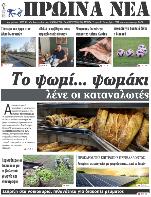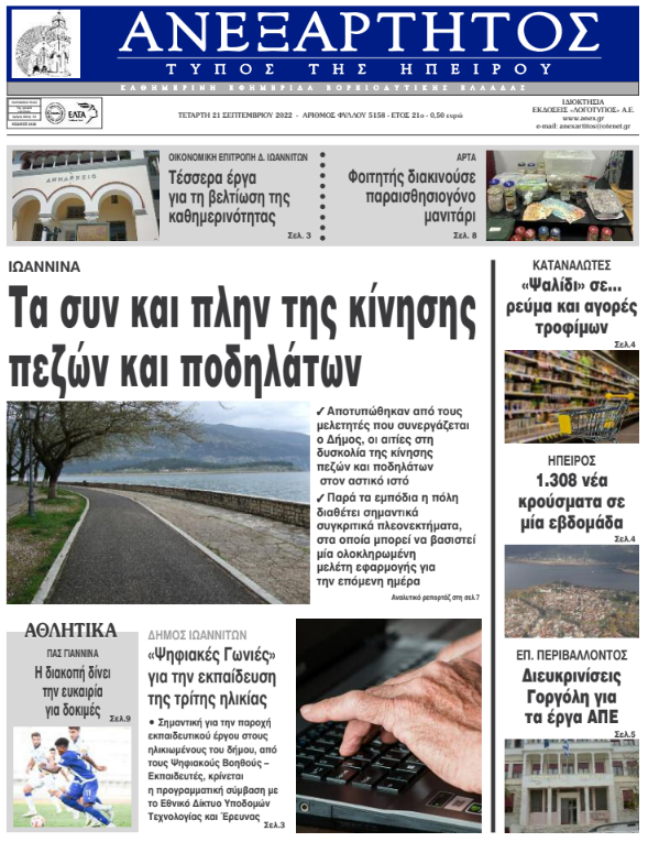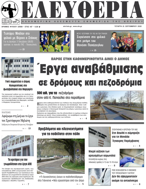 Διαβάστε στα πρωτοσέλιδα των γιαννιώτικων εφημερίδων της Τετάρτης 21 Σεπτεμβρίου