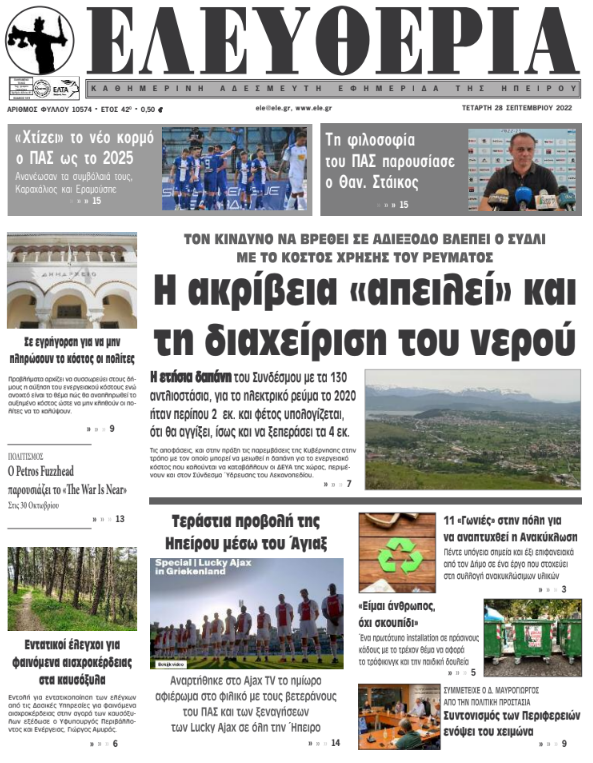 ΑρχικήΕΙΔΗΣΕΙΣΗΠΕΙΡΟΣ ΗΠΕΙΡΟΣ Τα πρωτοσέλιδα των γιαννιώτικων εφημερίδων 28.09.2022 148 FacebookTwitterWhatsAppEmailΤυπώνωViber Διαβάστε στα πρωτοσέλιδα των γιαννιώτικων εφημερίδων της Τετάρτης 28 Σεπτεμβρίου TagsΓΙΑΝΝΙΩΤΙΚΕΣ ΕΦΗΜΕΡΙΔΕΣΠΡΩΤΟΣΕΛΙΔΑ FacebookTwitterWhatsAppEmailΤυπώνωViber Προηγούμενο άρθροΗΠΑ -Ελάφι έκανε απίστευτο άλμα πάνω από κινούμενο αυτοκίνητο (βίντεο)Επόμενο άρθροΕντατικοί έλεγχοι για φαινόμενα αισχροκέρδειας στα καυσόξυλα ΣΧΕΤΙΚΑ ΑΡΘΡΑ Τα πρωτοσέλιδα των γιαννιώτικων εφημερίδων TOP STORIES 28.10.2025 Τα πρωτοσέλιδα των γιαννιώτικων εφημερίδων ΗΠΕΙΡΟΣ 25.10.2025 Τα πρωτοσέλιδα των γιαννιώτικων εφημερίδων ΗΠΕΙΡΟΣ 24.10.2025 Τα πρωτοσέλιδα των γιαννιώτικων εφημερίδων ΗΠΕΙΡΟΣ 23.10.2025 Τα πρωτοσέλιδα των γιαννιώτικων εφημερίδων ΗΠΕΙΡΟΣ 22.10.2025 Τα πρωτοσέλιδα των γιαννιώτικων εφημερίδων ΗΠΕΙΡΟΣ 21.10.2025 ΣΤΗΝ ΙΔΙΑ ΚΑΤΗΓΟΡΙΑ Μπήκε μπροστά το ΥΠΕΝ για την «ανορθογραφία» στη Φιλιππιάδα ΗΠΕΙΡΟΣ 29.10.2025 Ενημερωτικό διήμερο για την προσβασιμότητα ατόμων με προβλήματα όρασης ΗΠΕΙΡΟΣ 29.10.2025 Δήμος Κόνιτσας: Με λαμπρότητα ο εορτασμός της Εθνικής Επετείου της 28ης Οκτωβρίου ΗΠΕΙΡΟΣ 29.10.2025 Δυναμική αντίδραση για την αποτροπή «λουκέτου» στα ΕΛΤΑ Πραμάντων ΗΠΕΙΡΟΣ 29.10.2025 Με λαμπρότητα ο εορτασμός της Εθνικής Επετείου της 28ης Οκτωβρίου στον Δήμο Ζίτσας ΗΠΕΙΡΟΣ 29.10.2025 Τιμητική εκδήλωση για τον Παγκόσμιο Πρωταθλητή Στέφανο Ντούσκο ΗΠΕΙΡΟΣ 29.10.2025 ΜΗ ΧΑΣΕΤΕ Μπήκε μπροστά το ΥΠΕΝ για την «ανορθογραφία» στη Φιλιππιάδα «Ανοργάνωτο» βαρομετρικό χαμηλό έρχεται την Παρασκευή Με λαμπρότητα η παρέλαση για την επέτειο του «ΟΧΙ» Τα πρωτοσέλιδα των γιαννιώτικων εφημερίδων Οι ήρωες πεσόντες που ακόμη περιμένουν… ΔΗΜΟΦΙΛΗ Στιγμές ιστορίας και συγκίνησης στους «Ζωσιμάδες» Μέσω myAADE οι δηλώσεις απαλλαγής ΕΝΦΙΑ για τις πυρκαγιές του 2025 Αναβίωσε το έθιμο της Γουρουνοχαράς στη Φούρκα Ηγουμενίτσα: Συνελήφθη αλλοδαπός που μετέφερε παράτυπο μετανάστη Αιματοχυσία στη Γάζα εν μέσω εκεχειρίας: Τουλάχιστον 60 νεκροί από ισραηλινά πλήγματα