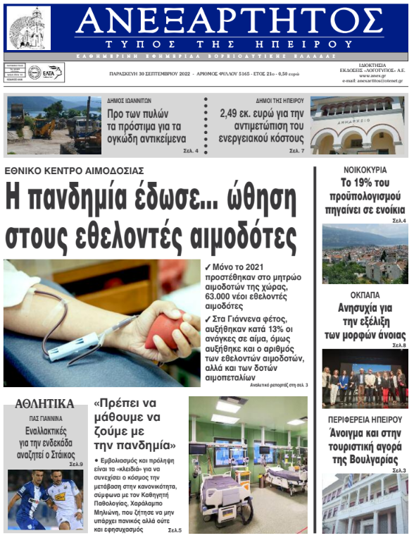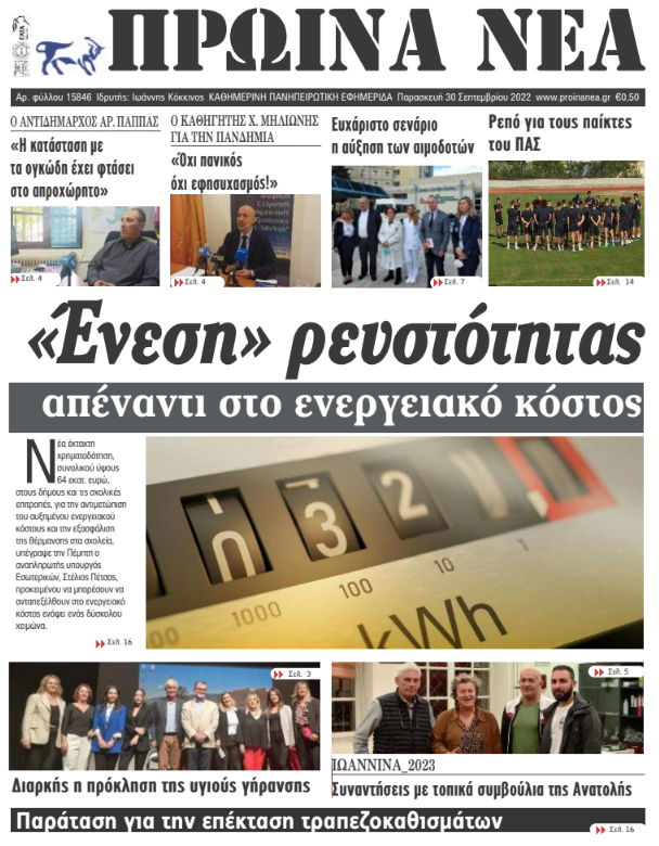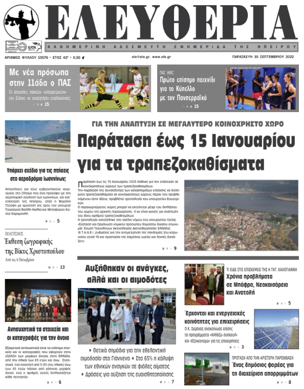 ΑρχικήΕΙΔΗΣΕΙΣΗΠΕΙΡΟΣ ΗΠΕΙΡΟΣ Τα πρωτοσέλιδα των γιαννιώτικων εφημερίδων 30.09.2022 144 FacebookTwitterWhatsAppEmailΤυπώνωViber Διαβάστε στα πρωτοσέλιδα των γιαννιώτικων εφημερίδων της Παρασκευής 30 Σεπτεμβρίου TagsΓΙΑΝΝΙΩΤΙΚΕΣ ΕΦΗΜΕΡΙΔΕΣΠΡΩΤΟΣΕΛΙΔΑ FacebookTwitterWhatsAppEmailΤυπώνωViber Προηγούμενο άρθροΒουλή: Ψηφίστηκε το νομοσχέδιο του υπουργείου ΥγείαςΕπόμενο άρθροΈνας δημόσιος φορέας για τη διαχείριση απορριμμάτων ΣΧΕΤΙΚΑ ΑΡΘΡΑ Τα πρωτοσέλιδα των γιαννιώτικων εφημερίδων TOP STORIES 08.11.2025 Τα πρωτοσέλιδα των γιαννιώτικων εφημερίδων ΗΠΕΙΡΟΣ 07.11.2025 Τα πρωτοσέλιδα των γιαννιώτικων εφημερίδων ΗΠΕΙΡΟΣ 06.11.2025 Τα πρωτοσέλιδα των γιαννιώτικων εφημερίδων ΗΠΕΙΡΟΣ 05.11.2025 Τα πρωτοσέλιδα των γιαννιώτικων εφημερίδων ΗΠΕΙΡΟΣ 04.11.2025 Τα πρωτοσέλιδα των γιαννιώτικων εφημερίδων TOP STORIES 01.11.2025 ΣΤΗΝ ΙΔΙΑ ΚΑΤΗΓΟΡΙΑ Νταλίκα ντελαπάρισε στον νέο κόμβο στην παλιά Ε.Ο Ιωαννίνων–Ηγουμενίτσας ΗΠΕΙΡΟΣ 10.11.2025 Τροχαίο με έναν τραυματία στο Κλειστό Άρτας ΗΠΕΙΡΟΣ 10.11.2025 Παρέλαβε δέμα με ναρκωτικά από θυρίδα ταχυμεταφορών ΗΠΕΙΡΟΣ 10.11.2025 Κοινό των Ηπειρωτών: Ανάγκη για πλήρη διαφάνεια στις παρεμβάσεις στον Γράμμο ΗΠΕΙΡΟΣ 10.11.2025 Μεγάλα προβλήματα από την κακοκαιρία σε Φιλιππιάδα, Πρέβεζα και Βόνιτσα ΗΠΕΙΡΟΣ 10.11.2025 Σύλληψη σε κατάστημα στα Ιωάννινα για διάθεση αλκοόλ σε ανηλίκους ΗΠΕΙΡΟΣ 10.11.2025 ΜΗ ΧΑΣΕΤΕ Νταλίκα ντελαπάρισε στον νέο κόμβο στην παλιά Ε.Ο Ιωαννίνων–Ηγουμενίτσας Τον Ιούνιο θα εγκατασταθούν οι 1.000 κάμερες στους δρόμους -Βodycam και σε αστυνομικούς Συντάξεις Δεκεμβρίου: Πότε θα καταβληθούν Ο «χάρτης» των πληρωμών από τον e-ΕΦΚΑ και τη ΔΥΠΑ έως την Παρασκευή 14 Νοεμβρίου Η Ελλάδα πρώτη στην ΕΕ σε πολίτες χωρίς αναγκαία ιατρική περίθαλψη ΔΗΜΟΦΙΛΗ Συνελήφθη οδηγός στην Ιόνια Οδό υπό την επήρεια αλκοόλ Βροχή έσβησε τη μεγάλη πυρκαγιά που έκαιγε το παλαιότερο εθνικό πάρκο της Νέας Ζηλανδίας Επικαιροποιήθηκε το έκτακτο δελτίο καιρού Μεγάλα προβλήματα από την κακοκαιρία σε Φιλιππιάδα, Πρέβεζα και Βόνιτσα Αποκαλύφθηκε ο μυστηριώδης «άνδρας με τη φεντόρα» από τη ληστεία του Λούβρου