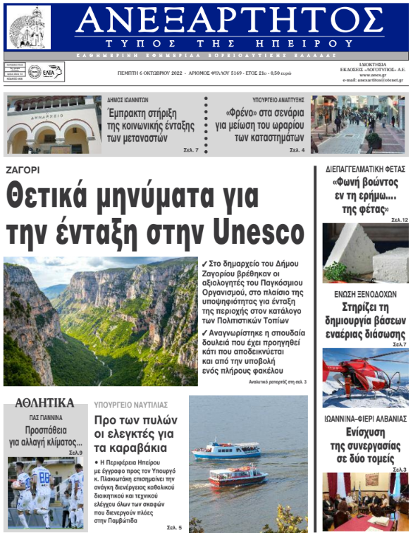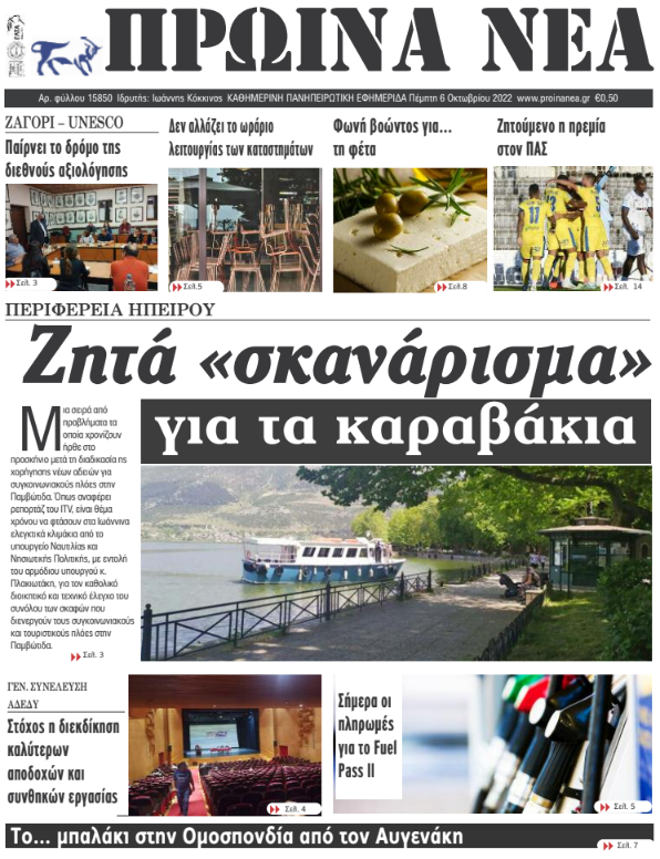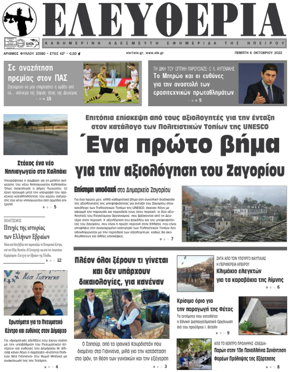 Διαβάστε στα πρωτοσέλιδα των γιαννιώτικων εφημερίδων της Πέμπτης 6 Οκτωβρίου