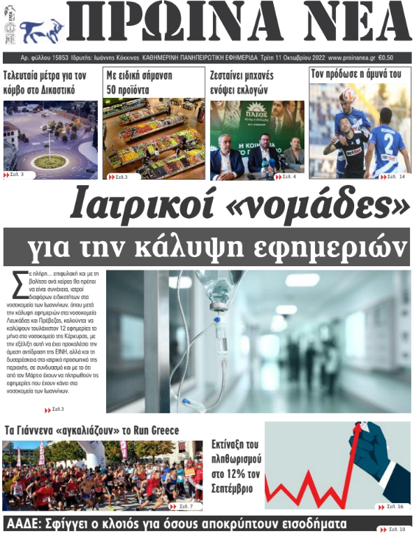 Διαβάστε στα πρωτοσέλιδα των γιαννιώτικων εφημερίδων της Τρίτης 11 Οκτωβρίου