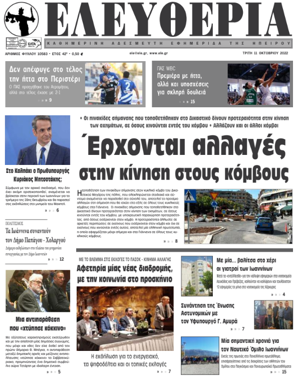 Διαβάστε στα πρωτοσέλιδα των γιαννιώτικων εφημερίδων της Τρίτης 11 Οκτωβρίου
