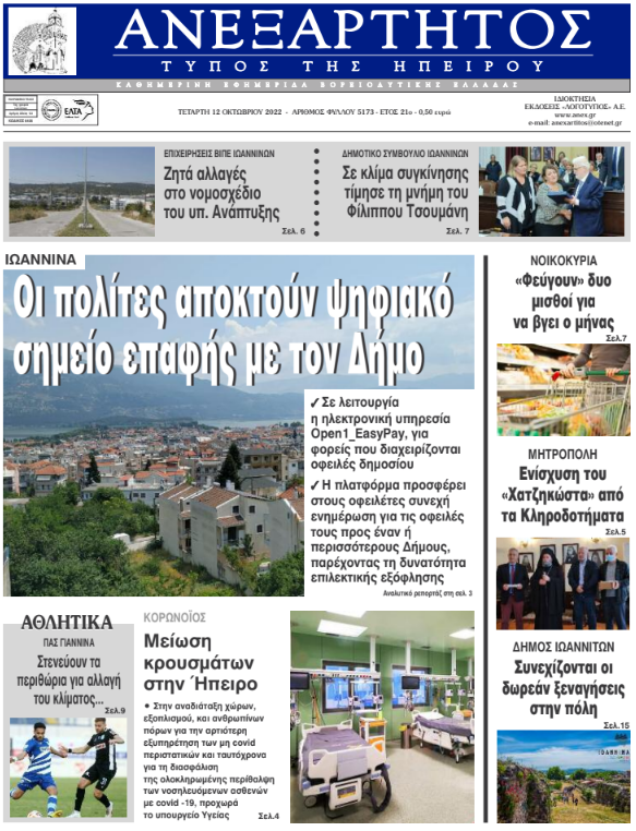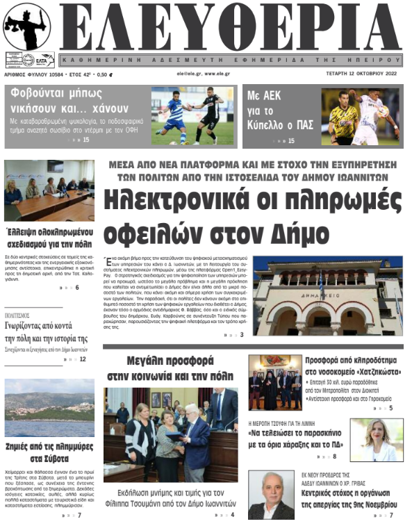 ΑρχικήΕΙΔΗΣΕΙΣΗΠΕΙΡΟΣ ΗΠΕΙΡΟΣ Τα πρωτοσέλιδα των γιαννιώτικων εφημερίδων 12.10.2022 150 FacebookTwitterWhatsAppEmailΤυπώνωViber Διαβάστε στα πρωτοσέλιδα των γιαννιώτικων εφημερίδων της Τετάρτης 12 Οκτωβρίου TagsΓΙΑΝΝΙΩΤΙΚΕΣ ΕΦΗΜΕΡΙΔΕΣΠΡΩΤΟΣΕΛΙΔΑ FacebookTwitterWhatsAppEmailΤυπώνωViber Προηγούμενο άρθροΕνισχύεται με 10 νέες ειδικότητες ο «Προσωπικός Γιατρός»Επόμενο άρθροΠροσφορά από κληροδότημα στο νοσοκομείο «Χατζηκώστα» ΣΧΕΤΙΚΑ ΑΡΘΡΑ Τα πρωτοσέλιδα των γιαννιώτικων εφημερίδων TOP STORIES 26.11.2025 Τα πρωτοσέλιδα των γιαννιώτικων εφημερίδων ΗΠΕΙΡΟΣ 25.11.2025 Τα πρωτοσέλιδα των γιαννιώτικων εφημερίδων ΗΠΕΙΡΟΣ 22.11.2025 Τα πρωτοσέλιδα των γιαννιώτικων εφημερίδων ΗΠΕΙΡΟΣ 21.11.2025 Τα πρωτοσέλιδα των γιαννιώτικων εφημερίδων TOP STORIES 20.11.2025 Τα πρωτοσέλιδα των γιαννιώτικων εφημερίδων ΗΠΕΙΡΟΣ 19.11.2025 ΣΤΗΝ ΙΔΙΑ ΚΑΤΗΓΟΡΙΑ Στάση ευθύνης ζητά από την αντιπολίτευση ο δήμαρχος Βορείων Τζουμέρκων ΗΠΕΙΡΟΣ 26.11.2025 Κλειστά την Πέμπτη όλα τα σχολεία στον Δήμο Ζηρού ΗΠΕΙΡΟΣ 26.11.2025 Την Πέμπτη κορυφώνεται η ένταση των καιρικών φαινομένων στην Ήπειρο ΗΠΕΙΡΟΣ 26.11.2025 Αιτήσεις για οικονομική ενίσχυση λόγω θεομηνίας στον Δήμο Αρταίων ΗΠΕΙΡΟΣ 26.11.2025 Ημερίδα για τη Φροντίδα των Πρόωρων Νεογνών από το ΓΝΙ “Χατζηκώστα” ΗΠΕΙΡΟΣ 26.11.2025 Δήμος Ζίτσας: Πράσινο φως για τις αγορές τοπικών προϊόντων ΗΠΕΙΡΟΣ 26.11.2025 ΜΗ ΧΑΣΕΤΕ Προσοχή, συνεργασία και ψυχραιμία για το νέο κύμα κακοκαιρίας Νεκρός 19χρονος οπλίτης από έκρηξη σε πεδίο βολής Ιστορική συμφωνία για επαναφορά των συλλογικών συμβάσεων Σε εγρήγορση για τον ιό του Δυτικού Νείλου Πτώση πεύκου προκαλεί ανησυχία στο σχολικό συγκρότημα της Ακαδημίας ΔΗΜΟΦΙΛΗ Την Πέμπτη κορυφώνεται η ένταση των καιρικών φαινομένων στην Ήπειρο Τζούφη: Οι δωρεές ανακουφίζουν το ΕΣΥ, δεν καλύπτουν τα κυβερνητικά κενά Σε εξέλιξη η κακοκαιρία Adel Σύλληψη διεθνώς καταζητούμενου για ανθρωποκτονία στην Κακαβιά Αιτήσεις για οικονομική ενίσχυση λόγω θεομηνίας στον Δήμο Αρταίων