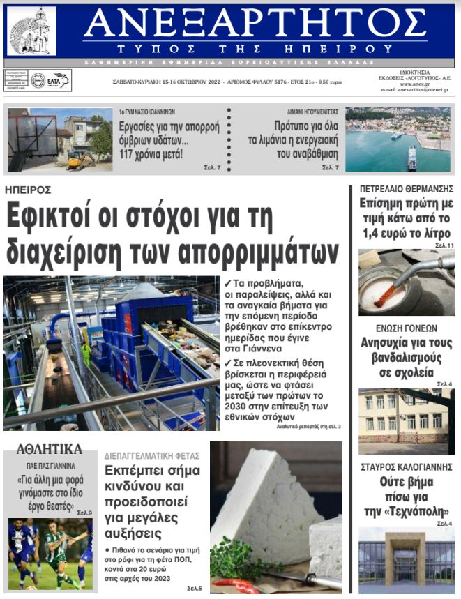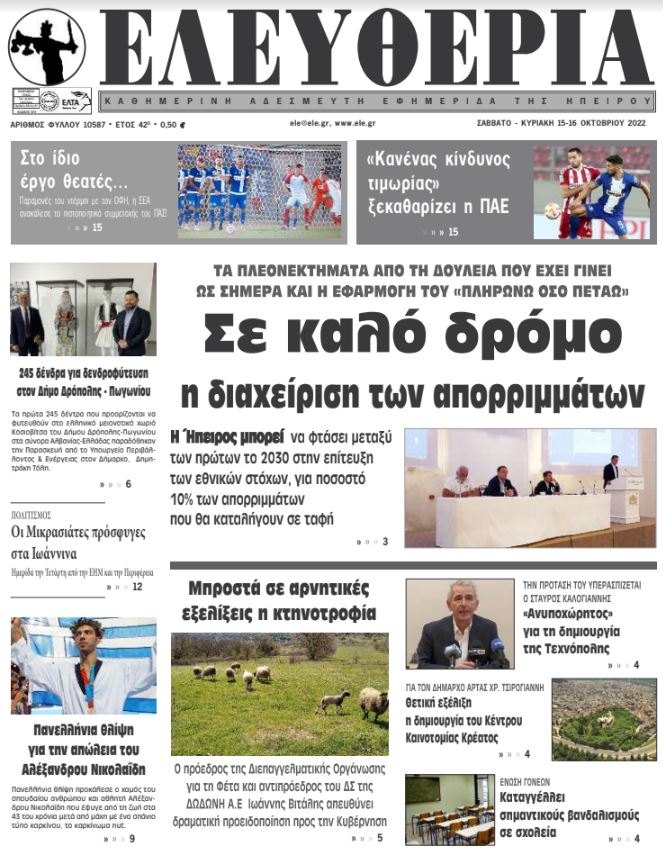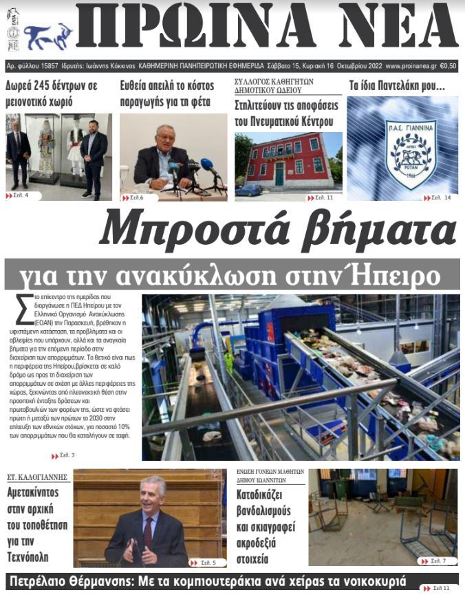 Διαβάστε στα πρωτοσέλιδα των γιαννιώτικων εφημερίδων 15-17 Οκτωβρίου