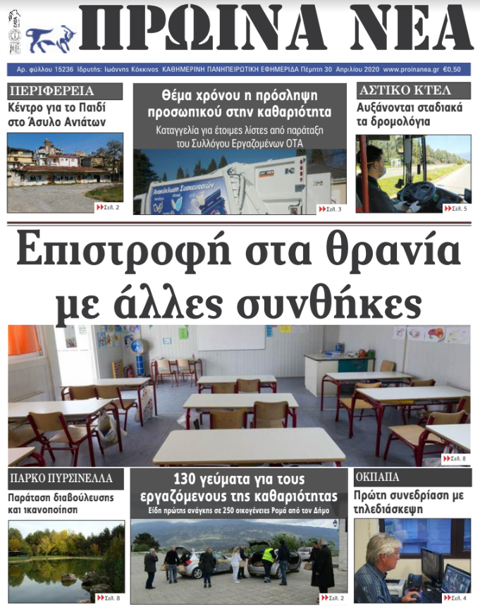 Διαβάστε στα πρωτοσέλιδα των γιαννιώτικων εφημερίδων σήμερα, Πέμπτη 30 Απριλίου.