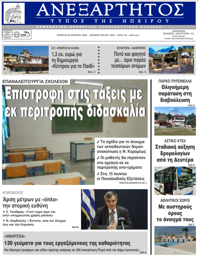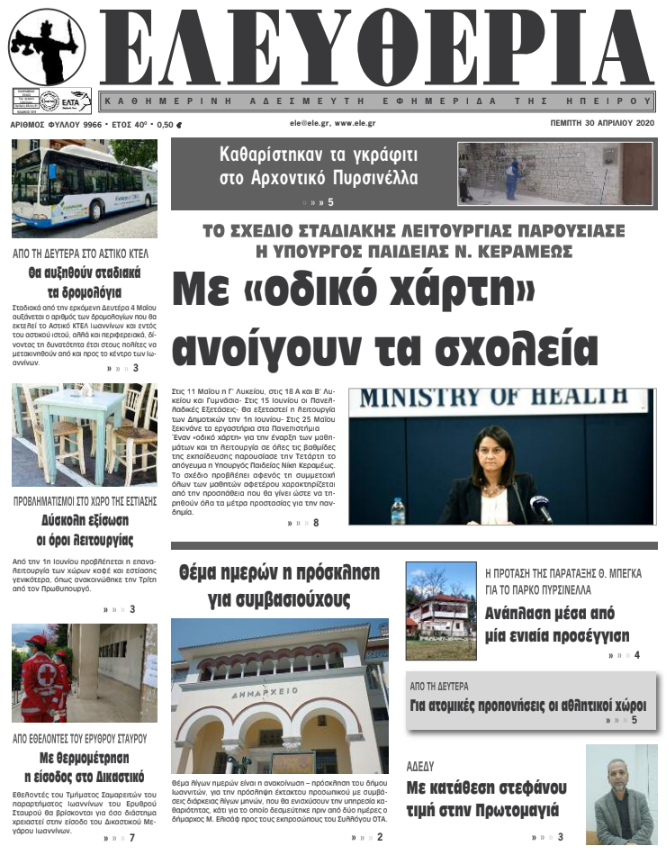 Διαβάστε στα πρωτοσέλιδα των γιαννιώτικων εφημερίδων σήμερα, Πέμπτη 30 Απριλίου.