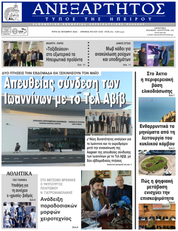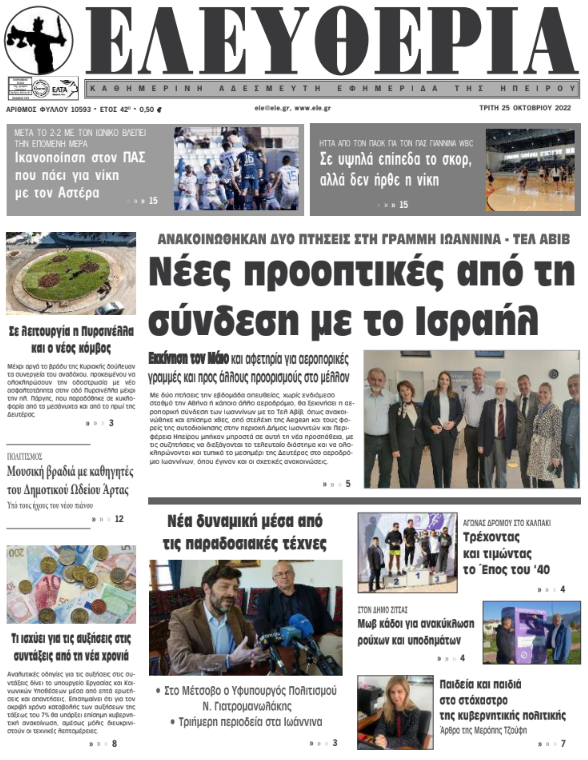 ΑρχικήΕΙΔΗΣΕΙΣΗΠΕΙΡΟΣ ΗΠΕΙΡΟΣ Τα πρωτοσέλιδα των γιαννιώτικων εφημερίδων 25.10.2022 974 FacebookTwitterWhatsAppEmailΤυπώνωViber Διαβάστε στα πρωτοσέλιδα των γιαννιώτικων εφημερίδων της Τρίτης 25 Οκτωβρίου TagsΓΙΑΝΝΙΩΤΙΚΕΣ ΕΦΗΜΕΡΙΔΕΣΠΡΩΤΟΣΕΛΙΔΑ FacebookTwitterWhatsAppEmailΤυπώνωViber Προηγούμενο άρθροΒρετανία: Το πρωί της Τρίτης το «ραντεβού» του Σούνακ με τον βασιλιά ΚάρολοΕπόμενο άρθροΤα του Καίσαρος… ΣΧΕΤΙΚΑ ΑΡΘΡΑ Τα πρωτοσέλιδα των γιαννιώτικων εφημερίδων TOP STORIES 05.12.2025 Τα πρωτοσέλιδα των γιαννιώτικων εφημερίδων ΗΠΕΙΡΟΣ 04.12.2025 Τα πρωτοσέλιδα των γιαννιώτικων εφημερίδων ΗΠΕΙΡΟΣ 03.12.2025 Τα πρωτοσέλιδα των γιαννιώτικων εφημερίδων TOP STORIES 02.12.2025 Τα πρωτοσέλιδα των γιαννιώτικων εφημερίδων ΗΠΕΙΡΟΣ 29.11.2025 Τα πρωτοσέλιδα των γιαννιώτικων εφημερίδων ΗΠΕΙΡΟΣ 28.11.2025 ΣΤΗΝ ΙΔΙΑ ΚΑΤΗΓΟΡΙΑ Φιάσκο για την ΕΛ.ΑΣ η διαφυγή των ληστών στην Αλβανία ΗΠΕΙΡΟΣ 05.12.2025 Χρηματοδότηση 93.000€ στα ΤΟΕΒ Αράχθου και Λούρου ΗΠΕΙΡΟΣ 05.12.2025 Ηγουμενίτσα: Δύο συλλήψεις για προώθηση παράτυπων μεταναστών ΗΠΕΙΡΟΣ 05.12.2025 Κοινό μέτωπο για την προστασία του ΧΥΤΥ Βλαχέρνας και της λίμνης Πουρναρίου ΗΠΕΙΡΟΣ 05.12.2025 Στο 8ο Περιφερειακό Συνέδριο Ξενοδόχων η Τοπική Κοινότητα ΝΙΚΗΣ ΗΠΕΙΡΟΣ 05.12.2025 Πυρκαγιά σε μονοκατοικία στην Πέρδικα ΗΠΕΙΡΟΣ 05.12.2025 ΜΗ ΧΑΣΕΤΕ «Ασπίδα κατά της παραπληροφόρησης ο τοπικός Τύπος» Φιάσκο για την ΕΛ.ΑΣ η διαφυγή των ληστών στην Αλβανία Τι ισχύει για το Δώρο Χριστουγέννων στους μισθωτούς του ιδιωτικού τομέα Έντονες αντιδράσεις για τη μεταφορά ζωικών αποβλήτων Τα πρωτοσέλιδα των γιαννιώτικων εφημερίδων ΔΗΜΟΦΙΛΗ Ν. ΚΕΡΑΜΕΩΣ -“Τον Ιανουάριο νομοθετείται η συμφωνία για τις συλλογικές συμβάσεις” ΧΡΙΣΤΟΥΓΕΝΝΙΑΤΙΚΟ ΔΕΝΤΡΟ -Συμβουλές για ασφαλή και οικολογική διακόσμηση ΑΑΔΕ -Κατασχέθηκε ένας τόνος λαθραίου καπνού για ναργιλέ Άνδρας στη Χίο έβαλε φωτιά με αναπτήρα στο χριστουγεννιάτικο δέντρο «Ασπίδα κατά της παραπληροφόρησης ο τοπικός Τύπος»