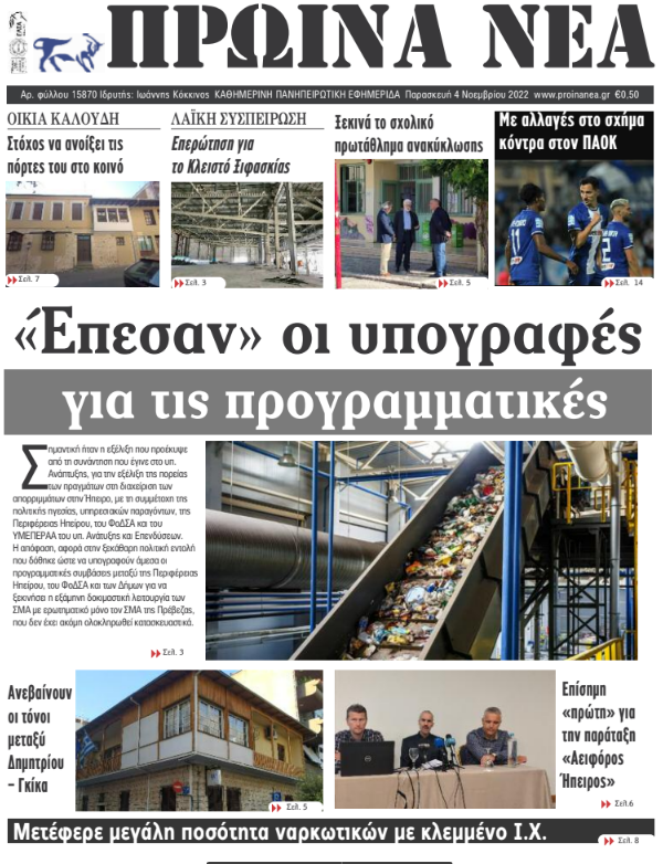 Διαβάστε στα πρωτοσέλιδα των γιαννιώτικων εφημερίδων της Παρασκευής 4 Νοεμβρίου