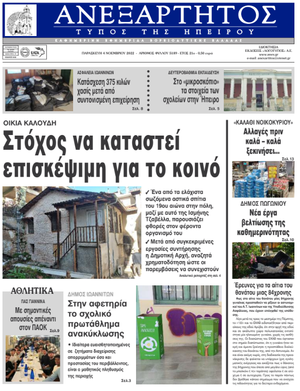 Διαβάστε στα πρωτοσέλιδα των γιαννιώτικων εφημερίδων της Παρασκευής 4 Νοεμβρίου