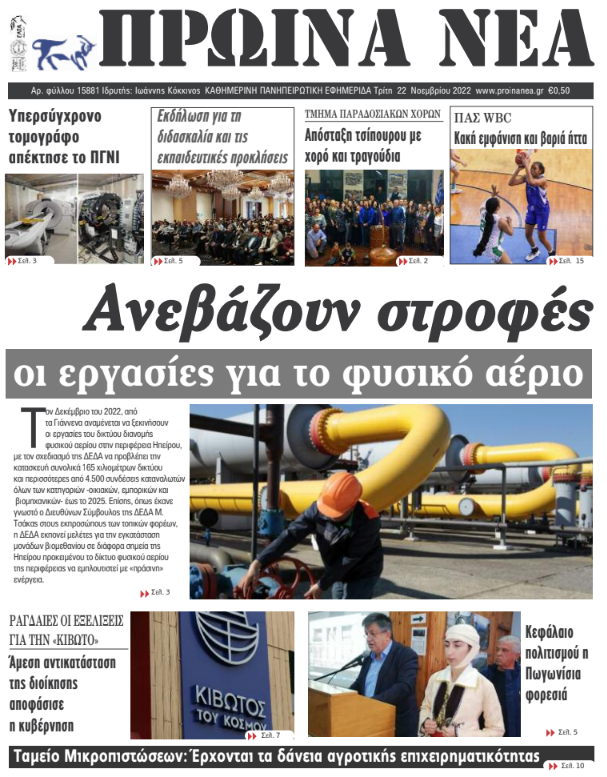 Διαβάστε στα πρωτοσέλιδα των γιαννιώτικων εφημερίδων της Τρίτης 22 Νοεμβρίου