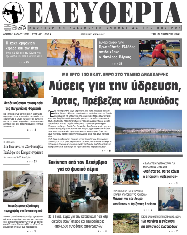 Διαβάστε στα πρωτοσέλιδα των γιαννιώτικων εφημερίδων της Τρίτης 22 Νοεμβρίου