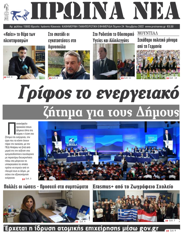 ΑρχικήΕΙΔΗΣΕΙΣΗΠΕΙΡΟΣ ΗΠΕΙΡΟΣ Τα πρωτοσέλιδα των γιαννιώτικων εφημερίδων 24.11.2022 356 FacebookTwitterWhatsAppEmailΤυπώνωViber Διαβάστε στα πρωτοσέλιδα των γιαννιώτικων εφημερίδων της Πέμπτης 24 Νοεμβρίου TagsΓΙΑΝΝΙΩΤΙΚΕΣ ΕΦΗΜΕΡΙΔΕΣΠΡΩΤΟΣΕΛΙΔΑ FacebookTwitterWhatsAppEmailΤυπώνωViber Προηγούμενο άρθροΜάτι: Ληστές εισέβαλαν σε μονοκατοικία, έδεσαν την οικιακή βοηθό και έκλεψαν έργα τέχνης μεγάλης αξίαςΕπόμενο άρθροΕιδική μέριμνα για το ενεργειακό κόστος ΣΧΕΤΙΚΑ ΑΡΘΡΑ Τα πρωτοσέλιδα των γιαννιώτικων εφημερίδων TOP STORIES 19.11.2025 Τα πρωτοσέλιδα των γιαννιώτικων εφημερίδων ΗΠΕΙΡΟΣ 18.11.2025 Τα πρωτοσέλιδα των γιαννιώτικων εφημερίδων ΗΠΕΙΡΟΣ 15.11.2025 Τα πρωτοσέλιδα των γιαννιώτικων εφημερίδων ΗΠΕΙΡΟΣ 14.11.2025 Τα πρωτοσέλιδα των γιαννιώτικων εφημερίδων ΗΠΕΙΡΟΣ 13.11.2025 Τα πρωτοσέλιδα των γιαννιώτικων εφημερίδων ΗΠΕΙΡΟΣ 12.11.2025 ΣΤΗΝ ΙΔΙΑ ΚΑΤΗΓΟΡΙΑ Αντλήσεις υδάτων και κλειστοί δρόμοι στη Θεσπρωτία ΗΠΕΙΡΟΣ 19.11.2025 Ζημιές σε ηλεκτρικές συσκευές από τον κεραυνό που έπεσε σε στέγη ΗΠΕΙΡΟΣ 19.11.2025 Επίσκεψη μελών του κινήματος ΝΙΚΗΣ στη Διεύθυνση Δευτεροβάθμιας Εκπαίδευσης ΗΠΕΙΡΟΣ 19.11.2025 Ισχυρή κακοκαιρία στην Ήπειρο – Ζημιές, κατολισθήσεις και ρεκόρ βροχόπτωσης ΗΠΕΙΡΟΣ 19.11.2025 Στην Ήπειρο τα μεγαλύτερα ύψη βροχής TOP STORIES 19.11.2025 ΑΔΕΔΥ Ιωαννίνων: Τα αποτελέσματα των εκλογών για τη νέα Εκτελεστική Γραμματεία ΗΠΕΙΡΟΣ 19.11.2025 ΜΗ ΧΑΣΕΤΕ Αντλήσεις υδάτων και κλειστοί δρόμοι στη Θεσπρωτία Ζημιές σε ηλεκτρικές συσκευές από τον κεραυνό που έπεσε σε στέγη Στην Ήπειρο τα μεγαλύτερα ύψη βροχής Νέες ρυθμίσεις για υπερχρεωμένους οφειλέτες, voucher για πρόληψη της οικονομικής κατάρρευσης Στο επίκεντρο ο ρόλος των νοσηλευτών ΔΗΜΟΦΙΛΗ Νέες ρυθμίσεις για υπερχρεωμένους οφειλέτες, voucher για πρόληψη της οικονομικής κατάρρευσης Στο επίκεντρο ο ρόλος των νοσηλευτών Το πρώτο φιλί δόθηκε πριν 20 εκατ. χρόνια, εκτιμούν οι επιστήμονες Ζημιά 12 εκ. ευρώ από παράνομες συνταγογραφήσεις Ο Κυριάκος Πιερρακάκης υποψήφιος για την προεδρία του Eurogroup