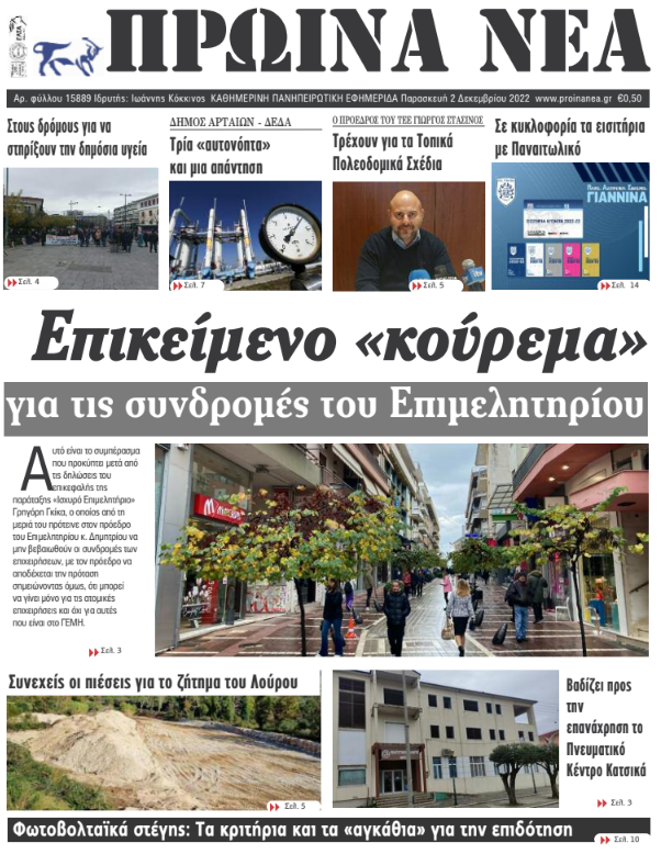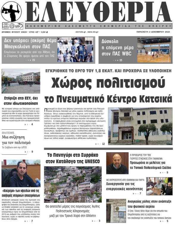 ΑρχικήTOP STORIES TOP STORIESΗΠΕΙΡΟΣ Τα πρωτοσέλιδα των γιαννιώτικων εφημερίδων 02.12.2022 395 FacebookTwitterWhatsAppEmailΤυπώνωViber Διαβάστε στα πρωτοσέλιδα των γιαννιώτικων εφημερίδων της Παρασκευής 2 Δεκεμβρίου TagsΓΙΑΝΝΙΩΤΙΚΕΣ ΕΦΗΜΕΡΙΔΕΣΠΡΩΤΟΣΕΛΙΔΑ FacebookTwitterWhatsAppEmailΤυπώνωViber Προηγούμενο άρθροΣτους δρόμους για να στηρίξουν την δημόσια υγείαΕπόμενο άρθροΠροχωράνε οι μελέτες για τα Τοπικά Πολεοδομικά Σχέδια ΣΧΕΤΙΚΑ ΑΡΘΡΑ Τα πρωτοσέλιδα των γιαννιώτικων εφημερίδων TOP STORIES 15.11.2025 Τα πρωτοσέλιδα των γιαννιώτικων εφημερίδων ΗΠΕΙΡΟΣ 14.11.2025 Τα πρωτοσέλιδα των γιαννιώτικων εφημερίδων ΗΠΕΙΡΟΣ 13.11.2025 Τα πρωτοσέλιδα των γιαννιώτικων εφημερίδων ΗΠΕΙΡΟΣ 12.11.2025 Τα πρωτοσέλιδα των γιαννιώτικων εφημερίδων ΗΠΕΙΡΟΣ 11.11.2025 Τα πρωτοσέλιδα των γιαννιώτικων εφημερίδων TOP STORIES 08.11.2025 ΣΤΗΝ ΙΔΙΑ ΚΑΤΗΓΟΡΙΑ Μπέγκας: Το Πολυτεχνείο ως διαχρονικό μήνυμα δημοκρατίας και ευθύνης ΗΠΕΙΡΟΣ 17.11.2025 Κορυφώνονται οι εκδηλώσεις για την εξέγερση του Πολυτεχνείου ΗΠΕΙΡΟΣ 17.11.2025 Ανήλικοι μπήκαν σε σπίτι και έκλεψαν πορτοφόλι ΗΠΕΙΡΟΣ 16.11.2025 Στο νοσοκομείο ανήλικη σε κατάσταση μέθης ΗΠΕΙΡΟΣ 16.11.2025 Τραυματισμός 63χρονης στο μονοπάτι προς τη Μονή Στομίου ΗΠΕΙΡΟΣ 16.11.2025 Να αξιοποιηθεί το πρόγραμμα δωρεάν τσιπαρισμάτων ΗΠΕΙΡΟΣ 16.11.2025 ΜΗ ΧΑΣΕΤΕ Κορυφώνονται οι εκδηλώσεις για την εξέγερση του Πολυτεχνείου Ένας ζωντανός καθρέφτης της παράδοσης με βλέμμα στο μέλλον Μαθηματική έρευνα και κριτική σκέψη στην εποχή της Τεχνητής Νοημοσύνης Τα πρωτοσέλιδα των γιαννιώτικων εφημερίδων Εντυπωσιακό το αποτέλεσμα της αναστήλωσης στο τζαμί Καλούτσανης ΔΗΜΟΦΙΛΗ Ανδρουλάκης: Κρατάμε ζωντανό το μήνυμα του Πολυτεχνείου απέναντι στον αυταρχισμό και τις ανισότητες Λωρίδα της Γάζας: Ψηφίζεται σήμερα η ανάπτυξη διεθνούς δύναμης σύμφωνα με το σχέδιο Τραμπ Δένδιας, Κεραμέως, Δημητριάδης και πολλοί βουλευτές στο καζάνι του Σταυρού Παπασωτηρίου στη Φλώρινα Μητσοτάκης: Μετατρέπουμε το Πολυτεχνείο σε καθημερινή προσπάθεια για Ελλάδα ισχυρή και δίκαιη Επίδομα θέρμανσης: Ποιοι κινδυνεύουν να το χάσουν αν δεν προσέξουν