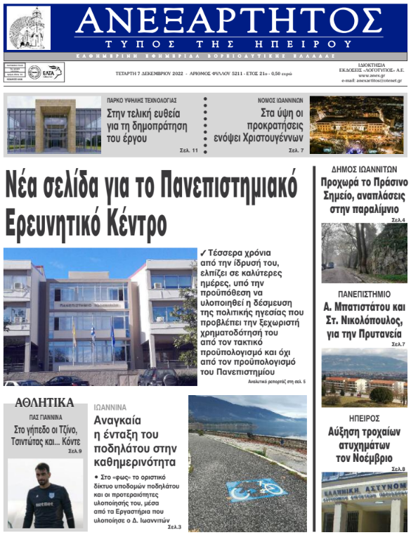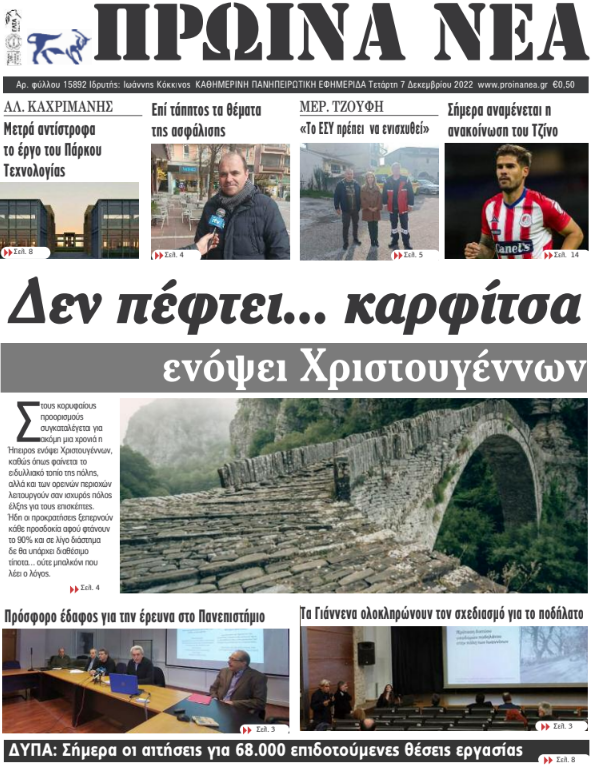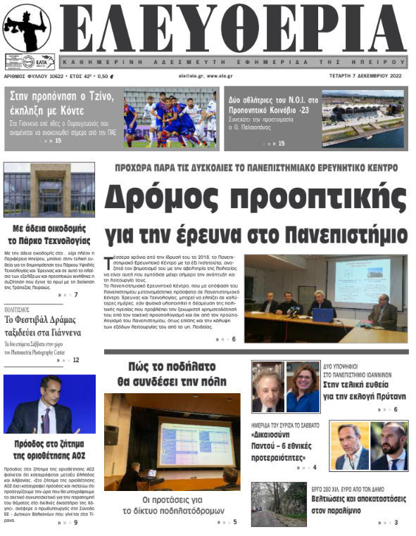Διαβάστε στα πρωτοσέλιδα των γιαννιώτικων εφημερίδων της Τετάρτης 7 Δεκεμβρίου