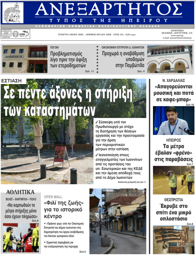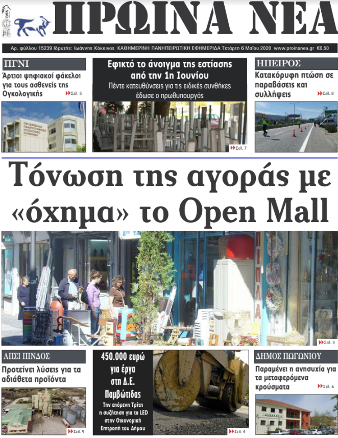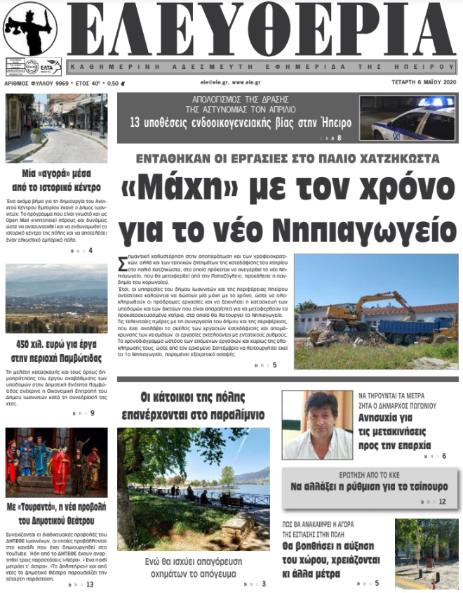 ΑρχικήΕΙΔΗΣΕΙΣΗΠΕΙΡΟΣ ΗΠΕΙΡΟΣ Τα πρωτοσέλιδα των γιαννιώτικων εφημερίδων 06.05.2020 200 FacebookTwitterWhatsAppEmailΤυπώνωViber Διαβάστε στα πρωτοσέλιδα των γιαννιώτικων εφημερίδων σήμερα, Τετάρτη 6 Μαΐου. TagsΓΙΑΝΝΙΩΤΙΚΕΣ ΕΦΗΜΕΡΙΔΕΣΠΡΩΤΟΣΕΛΙΔΑ FacebookTwitterWhatsAppEmailΤυπώνωViber Προηγούμενο άρθροΧαρδαλιάς: «Απαγορεύονται τα άτυπα πάρτι έξω από καφέ- μπαρ και τα takeaway ποτά»Επόμενο άρθροΠροχωρούν οι εργασίες στον Σκορπιό – Το φιλόδοξο όραμα του Ριμπολόβλεφ παίρνει σάρκα και οστά ΣΧΕΤΙΚΑ ΑΡΘΡΑ Τα πρωτοσέλιδα των γιαννιώτικων εφημερίδων ΗΠΕΙΡΟΣ 22.11.2025 Τα πρωτοσέλιδα των γιαννιώτικων εφημερίδων ΗΠΕΙΡΟΣ 21.11.2025 Τα πρωτοσέλιδα των γιαννιώτικων εφημερίδων TOP STORIES 20.11.2025 Τα πρωτοσέλιδα των γιαννιώτικων εφημερίδων ΗΠΕΙΡΟΣ 19.11.2025 Τα πρωτοσέλιδα των γιαννιώτικων εφημερίδων ΗΠΕΙΡΟΣ 18.11.2025 Τα πρωτοσέλιδα των γιαννιώτικων εφημερίδων ΗΠΕΙΡΟΣ 15.11.2025 ΣΤΗΝ ΙΔΙΑ ΚΑΤΗΓΟΡΙΑ Άμεση στήριξη υποσχέθηκε ο Χρ. Δήμας για τα Τζουμέρκα ΗΠΕΙΡΟΣ 24.11.2025 Ήδη σε κατάσταση έκτακτης ανάγκης ο Δήμος Βορείων Τζουμέρκων ΗΠΕΙΡΟΣ 24.11.2025 Κυκλοφοριακές ρυθμίσεις λόγω εργασιών αποκατάστασης στον Δήμο Ζηρού ΗΠΕΙΡΟΣ 24.11.2025 Σύλληψη φυγόποινου για φοροδιαφυγή ΗΠΕΙΡΟΣ 24.11.2025 Συνελήφθη αλλοδαπός με ένταλμα στη Θεσπρωτία ΗΠΕΙΡΟΣ 24.11.2025 Με νέα γραμματεία και νέο κανονισμό λειτουργίας η «Ενότητα Πολιτών Νέα Γιάννενα» ΗΠΕΙΡΟΣ 24.11.2025 ΜΗ ΧΑΣΕΤΕ Άμεση στήριξη υποσχέθηκε ο Χρ. Δήμας για τα Τζουμέρκα Έκτακτο δελτίο καιρού: Ισχυρή κακοκαιρία από την Τρίτη με βροχές και καταιγίδες Πρόοδος στις διαπραγματεύσεις για το αμερικανικό σχέδιο ειρήνης Αντίστροφη μέτρηση για το εορταστικό ωράριο Χριστουγέννων Επίδομα 250 ευρώ: Ποιοι πληρώνονται – Αναλυτικά τα κριτήρια ΔΗΜΟΦΙΛΗ Νέα Αριστερά: Αδιαφορία της κυβέρνησης για την αντιπλημμυρική προστασία της Ηπείρου Κωνσταντινούπολη: Νέο μέτρο απαγορεύει τη σίτιση αδέσποτων σκύλων Άμεση στήριξη υποσχέθηκε ο Χρ. Δήμας για τα Τζουμέρκα Αντίστροφη μέτρηση για το εορταστικό ωράριο Χριστουγέννων Με νέα γραμματεία και νέο κανονισμό λειτουργίας η «Ενότητα Πολιτών Νέα Γιάννενα»