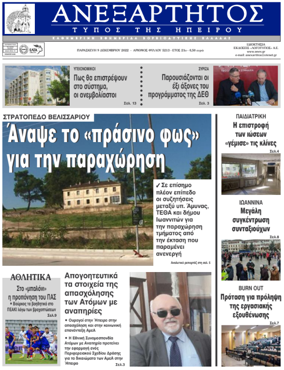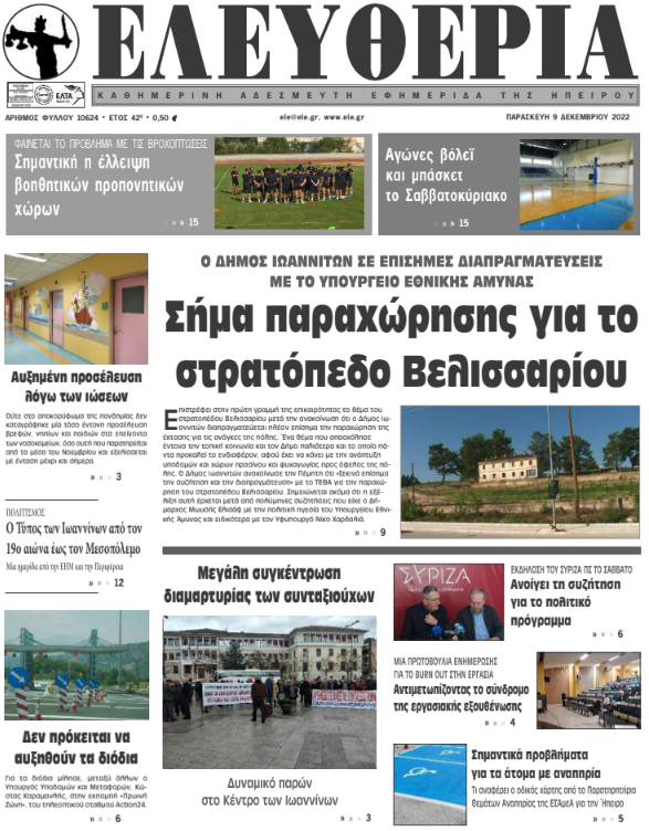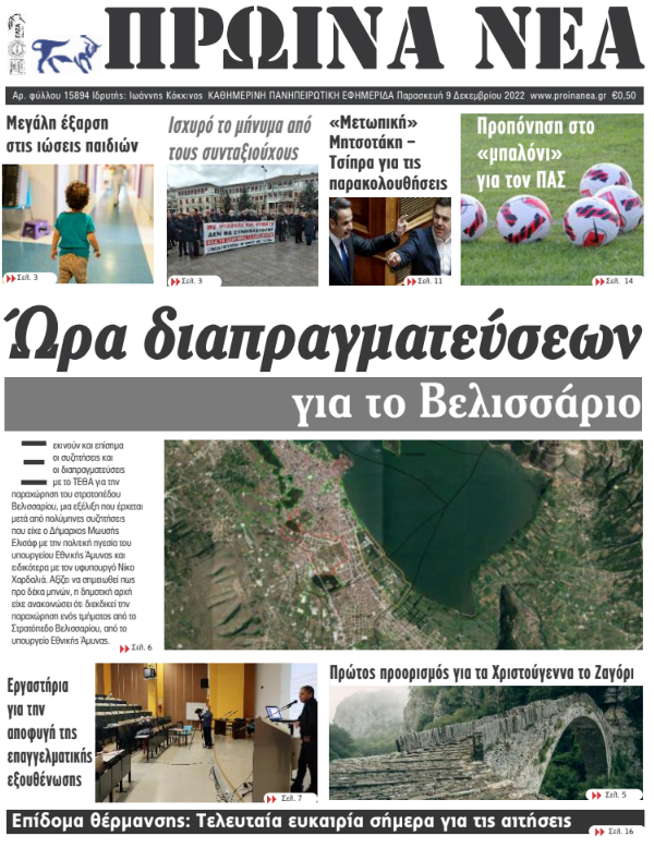 Διαβάστε στα πρωτοσέλιδα των γιαννιώτικων εφημερίδων της Παρασκευής 9 Δεκεμβρίου