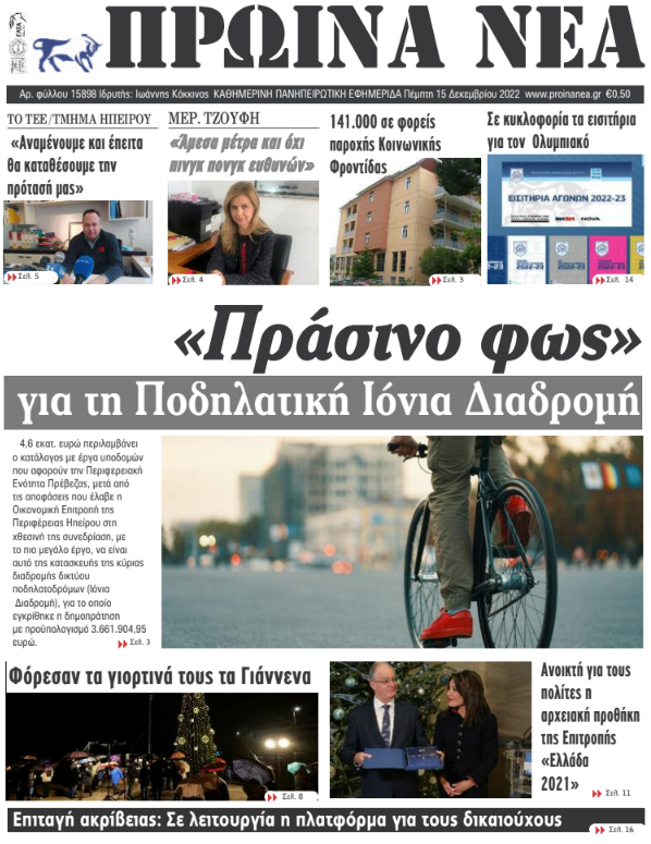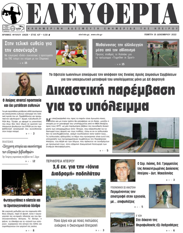 Διαβάστε στα πρωτοσέλιδα των γιαννιώτικων εφημερίδων της Πέμπτης 15 Δεκεμβρίου