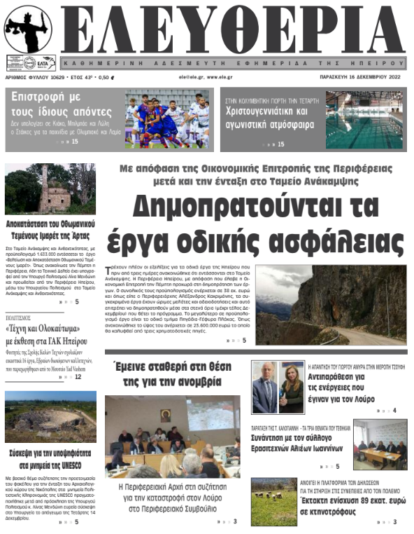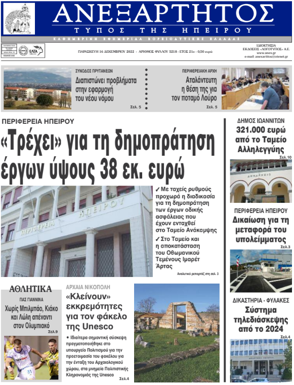 ΑρχικήΕΙΔΗΣΕΙΣΗΠΕΙΡΟΣ ΗΠΕΙΡΟΣ Τα πρωτοσέλιδα των γιαννιώτικων εφημερίδων 16.12.2022 344 FacebookTwitterWhatsAppEmailΤυπώνωViber Διαβάστε στα πρωτοσέλιδα των γιαννιώτικων εφημερίδων της Παρασκευής 16 Δεκεμβρίου TagsΓΙΑΝΝΙΩΤΙΚΕΣ ΕΦΗΜΕΡΙΔΕΣΠΡΩΤΟΣΕΛΙΔΑ FacebookTwitterWhatsAppEmailΤυπώνωViber Προηγούμενο άρθροΔεσμεύτηκαν τα περιουσιακά στοιχεία του πατέρα Αντωνίου και της πρεσβυτέραςΕπόμενο άρθροΑντιπαράθεση για τις ενέργειες που έγιναν για τον Λούρο ΣΧΕΤΙΚΑ ΑΡΘΡΑ Τα πρωτοσέλιδα των γιαννιώτικων εφημερίδων ΗΠΕΙΡΟΣ 22.11.2025 Τα πρωτοσέλιδα των γιαννιώτικων εφημερίδων ΗΠΕΙΡΟΣ 21.11.2025 Τα πρωτοσέλιδα των γιαννιώτικων εφημερίδων TOP STORIES 20.11.2025 Τα πρωτοσέλιδα των γιαννιώτικων εφημερίδων ΗΠΕΙΡΟΣ 19.11.2025 Τα πρωτοσέλιδα των γιαννιώτικων εφημερίδων ΗΠΕΙΡΟΣ 18.11.2025 Τα πρωτοσέλιδα των γιαννιώτικων εφημερίδων ΗΠΕΙΡΟΣ 15.11.2025 ΣΤΗΝ ΙΔΙΑ ΚΑΤΗΓΟΡΙΑ Άμεση στήριξη υποσχέθηκε ο Χρ. Δήμας για τα Τζουμέρκα ΗΠΕΙΡΟΣ 24.11.2025 Ήδη σε κατάσταση έκτακτης ανάγκης ο Δήμος Βορείων Τζουμέρκων ΗΠΕΙΡΟΣ 24.11.2025 Κυκλοφοριακές ρυθμίσεις λόγω εργασιών αποκατάστασης στον Δήμο Ζηρού ΗΠΕΙΡΟΣ 24.11.2025 Σύλληψη φυγόποινου για φοροδιαφυγή ΗΠΕΙΡΟΣ 24.11.2025 Συνελήφθη αλλοδαπός με ένταλμα στη Θεσπρωτία ΗΠΕΙΡΟΣ 24.11.2025 Με νέα γραμματεία και νέο κανονισμό λειτουργίας η «Ενότητα Πολιτών Νέα Γιάννενα» ΗΠΕΙΡΟΣ 24.11.2025 ΜΗ ΧΑΣΕΤΕ Άμεση στήριξη υποσχέθηκε ο Χρ. Δήμας για τα Τζουμέρκα Έκτακτο δελτίο καιρού: Ισχυρή κακοκαιρία από την Τρίτη με βροχές και καταιγίδες Πρόοδος στις διαπραγματεύσεις για το αμερικανικό σχέδιο ειρήνης Αντίστροφη μέτρηση για το εορταστικό ωράριο Χριστουγέννων Επίδομα 250 ευρώ: Ποιοι πληρώνονται – Αναλυτικά τα κριτήρια ΔΗΜΟΦΙΛΗ Πλεύση Ελευθερίας: Ορκίστηκε η Έλλη Ρούσου Τρίκαλα: Προβλήματα στο οδικό δίκτυο στα ορεινά της Καλαμπάκας Σε κατάσταση έκτακτης ανάγκης ο Δήμος Ιωαννιτών Ο «χάρτης» των πληρωμών από τον e-ΕΦΚΑ και τη ΔΥΠΑ έως τις 28 Νοεμβρίου Έκτακτο δελτίο καιρού: Ισχυρή κακοκαιρία από την Τρίτη με βροχές και καταιγίδες
