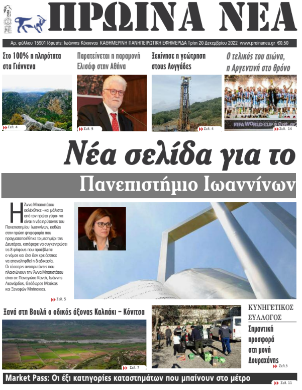 Διαβάστε στα πρωτοσέλιδα των γιαννιώτικων εφημερίδων της Τρίτης 20 Δεκεμβρίου