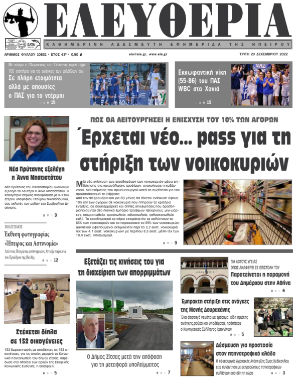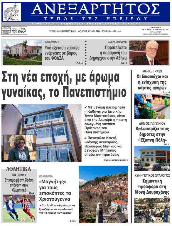 Διαβάστε στα πρωτοσέλιδα των γιαννιώτικων εφημερίδων της Τρίτης 20 Δεκεμβρίου