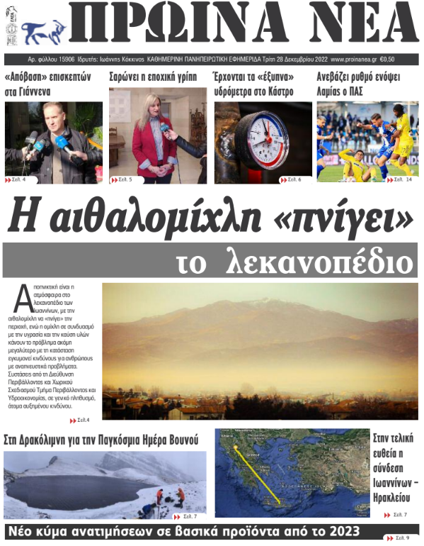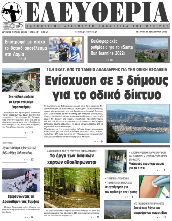 ΑρχικήΕΙΔΗΣΕΙΣΗΠΕΙΡΟΣ ΗΠΕΙΡΟΣ Τα πρωτοσέλιδα των γιαννιώτικων εφημερίδων 28.12.2022 371 FacebookTwitterWhatsAppEmailΤυπώνωViber Διαβάστε στα πρωτοσέλιδα των γιαννιώτικων εφημερίδων της Τετάρτης 28 Δεκεμβρίου TagsΓΙΑΝΝΙΩΤΙΚΕΣ ΕΦΗΜΕΡΙΔΕΣΠΡΩΤΟΣΕΛΙΔΑ FacebookTwitterWhatsAppEmailΤυπώνωViber Προηγούμενο άρθροΙΧ με τρία άτομα έπεσε σε γκρεμό 80 μ.- Απεγκλωβίστηκαν με ελαφρά τραύματαΕπόμενο άρθρο10 παραβάσεις για μέθη στην εορταστική περίοδο στην Ήπειρο ΣΧΕΤΙΚΑ ΑΡΘΡΑ Τα πρωτοσέλιδα των γιαννιώτικων εφημερίδων ΗΠΕΙΡΟΣ 29.11.2025 Τα πρωτοσέλιδα των γιαννιώτικων εφημερίδων ΗΠΕΙΡΟΣ 28.11.2025 Τα πρωτοσέλιδα των γιαννιώτικων εφημερίδων ΗΠΕΙΡΟΣ 27.11.2025 Τα πρωτοσέλιδα των γιαννιώτικων εφημερίδων ΗΠΕΙΡΟΣ 26.11.2025 Τα πρωτοσέλιδα των γιαννιώτικων εφημερίδων ΗΠΕΙΡΟΣ 25.11.2025 Τα πρωτοσέλιδα των γιαννιώτικων εφημερίδων ΗΠΕΙΡΟΣ 22.11.2025 ΣΤΗΝ ΙΔΙΑ ΚΑΤΗΓΟΡΙΑ 270 αλκοτέστ και 8 παραβάσεις για μέθη στα Ιωάννινα ΗΠΕΙΡΟΣ 01.12.2025 Έξι συλλήψεις τις τελευταίες δύο εβδομάδες για κατοχή ναρκωτικών ΗΠΕΙΡΟΣ 01.12.2025 Το περιφερειακό συμβούλιο βράβευσε την ομάδα IGEM του Πανεπιστημίου Ιωαννίνων ΗΠΕΙΡΟΣ 01.12.2025 Δήμος Β. Τζουμέρκων: Σταθερά τα ανταποδοτικά τέλη και τα τέλη ύδρευσης για το 2026 ΗΠΕΙΡΟΣ 01.12.2025 Σύλληψη ανήλικου στα Ιωάννινα για κατοχή σιδερογροθιάς ΗΠΕΙΡΟΣ 01.12.2025 Συνελήφθη αλλοδαπή με ένταλμα στη Θεσπρωτία ΗΠΕΙΡΟΣ 01.12.2025 ΜΗ ΧΑΣΕΤΕ Κλιμακώνουν οι αγρότες: Έκλεισαν την εθνική οδό στα Μάλγαρα Νέα κακοκαιρία προ των πυλών – Πού θα χτυπήσει Υποχρεωτική η αποδοχή πληρωμών μέσω IRIS για συναλλαγές με ιδιώτες Διαχειρίσιμη η κατάσταση στα Τζουμέρκα – Μία κατοικία κατεδαφιστέα Τίμησαν τη μνήμη και τη θυσία του Λορέντζου Μαβίλη ΔΗΜΟΦΙΛΗ Cyber Monday: Οι «παγίδες» των διαδικτυακών εκπτώσεων Μητσοτάκης: Έχουμε αύξηση στο πραγματικό καθαρό εισόδημα 22% σε έξι χρόνια Ουκρανία: Τέσσερις νεκροί από ρωσικό πλήγμα στο Ντνίπρο Έκθεση εικαστικών έργων σε νέο εκθεσιακό χώρο «Πύρρειος» νίκη για τον ΠΑΣ WBC