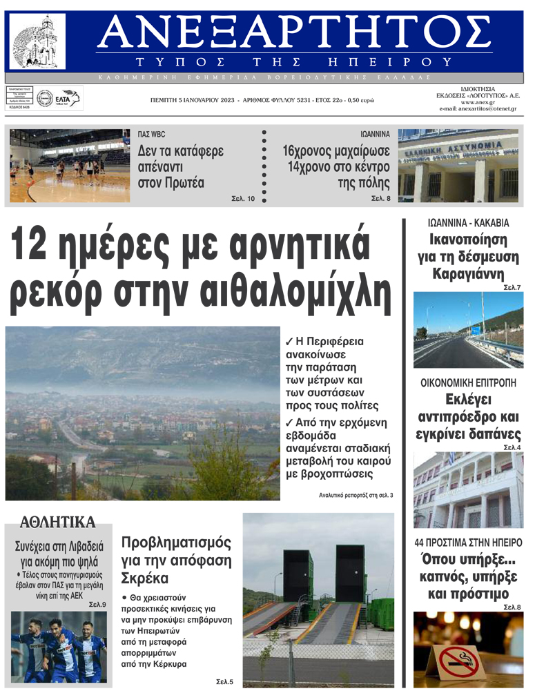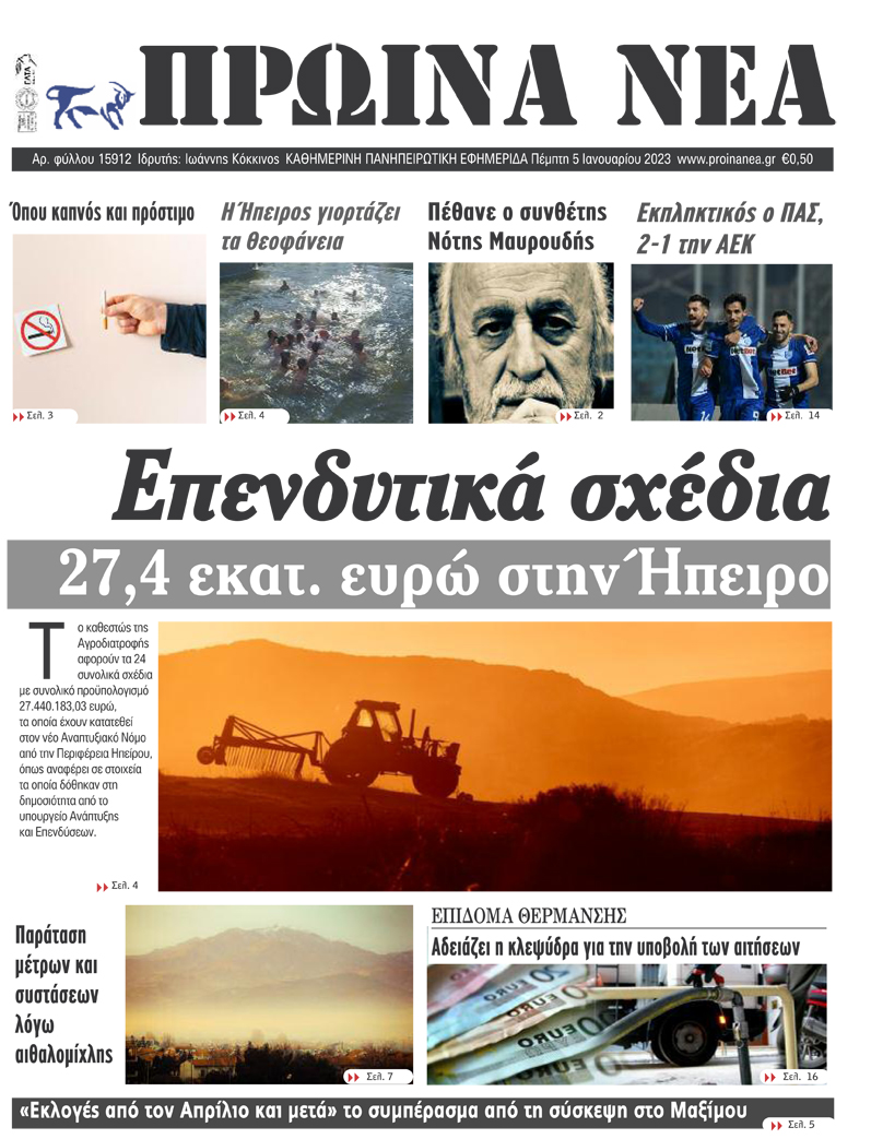 ΑρχικήΕΙΔΗΣΕΙΣΗΠΕΙΡΟΣ ΗΠΕΙΡΟΣ Τα πρωτοσέλιδα των γιαννιώτικων εφημερίδων 05.01.2023 378 FacebookTwitterWhatsAppEmailΤυπώνωViber Διαβάστε στα πρωτοσέλιδα των γιαννιώτικων εφημερίδων της Πέμπτης 5 Ιανουαρίου TagsΓΙΑΝΝΙΩΤΙΚΕΣ ΕΦΗΜΕΡΙΔΕΣΠΡΩΤΟΣΕΛΙΔΑ FacebookTwitterWhatsAppEmailΤυπώνωViber Προηγούμενο άρθροΑρνητικό τεστ για COVID από τους ταξιδιώτες από την Κίνα θα ζητά πλέον και η ΣουηδίαΕπόμενο άρθρο44 παραβάσεις της αντικαπνιστικής νομοθεσίας στην Ήπειρο ΣΧΕΤΙΚΑ ΑΡΘΡΑ Τα πρωτοσέλιδα των γιαννιώτικων εφημερίδων TOP STORIES 02.12.2025 Τα πρωτοσέλιδα των γιαννιώτικων εφημερίδων ΗΠΕΙΡΟΣ 29.11.2025 Τα πρωτοσέλιδα των γιαννιώτικων εφημερίδων ΗΠΕΙΡΟΣ 28.11.2025 Τα πρωτοσέλιδα των γιαννιώτικων εφημερίδων ΗΠΕΙΡΟΣ 27.11.2025 Τα πρωτοσέλιδα των γιαννιώτικων εφημερίδων ΗΠΕΙΡΟΣ 26.11.2025 Τα πρωτοσέλιδα των γιαννιώτικων εφημερίδων ΗΠΕΙΡΟΣ 25.11.2025 ΣΤΗΝ ΙΔΙΑ ΚΑΤΗΓΟΡΙΑ «Θα κάνουμε Χριστούγεννα στα μπλόκα» λένε οι αγρότες ΗΠΕΙΡΟΣ 02.12.2025 Μεγάλες ζημιές από πυρκαγιά σε διαμέρισμα στους Αμπελόκηπους ΗΠΕΙΡΟΣ 02.12.2025 Αυτοψία Τσίμαρη στις πληγείσες περιοχές των Τζουμέρκων ΗΠΕΙΡΟΣ 02.12.2025 Στα Ιωάννινα το 1ο Πολυθεματικό Επιστημονικό Συνέδριο ΟΤΑ ΗΠΕΙΡΟΣ 02.12.2025 800.000 ευρώ για το οδικό δίκτυο Καρδαμιτσίων και Νέας Ζωής ΗΠΕΙΡΟΣ 02.12.2025 Φωτιά σε πολυκατοικία στους Αμπελόκηπους ΗΠΕΙΡΟΣ 02.12.2025 ΜΗ ΧΑΣΕΤΕ «Θα κάνουμε Χριστούγεννα στα μπλόκα» λένε οι αγρότες Μεγάλες ζημιές από πυρκαγιά σε διαμέρισμα στους Αμπελόκηπους 800.000 ευρώ για το οδικό δίκτυο Καρδαμιτσίων και Νέας Ζωής Απολογισμός Οδικής Ασφάλειας για τον Νοέμβριο στην Ήπειρο Δώρο Χριστουγέννων: Γιατί φέτος θα δοθεί νωρίτερα και πώς υπολογίζεται ΔΗΜΟΦΙΛΗ «Θα κάνουμε Χριστούγεννα στα μπλόκα» λένε οι αγρότες Έρχεται σημαντική αλλαγή του καιρού από την Τετάρτη Η Μ. Τζούφη για την ακύρωση του υδροηλεκτρικού στη Δόλιανη Επίδομα Παιδιού Α21: Κλείνει την Τετάρτη η πλατφόρμα Έργο LED δεν είχαμε, έργο βρήκαμε!