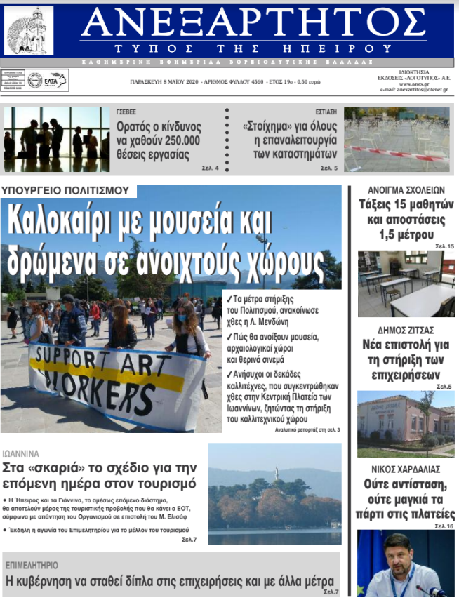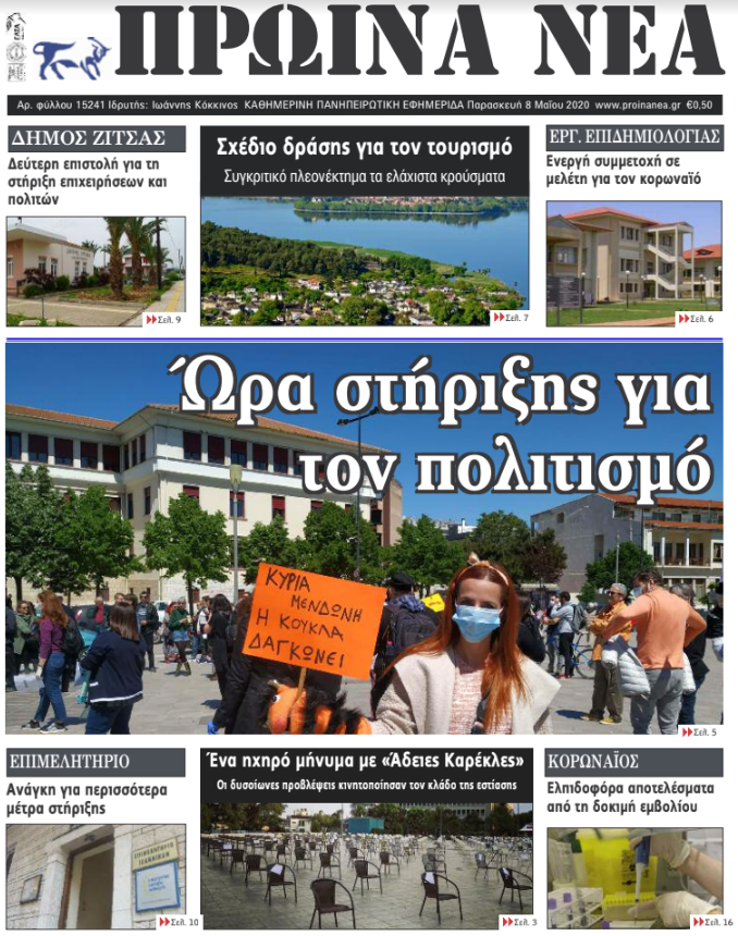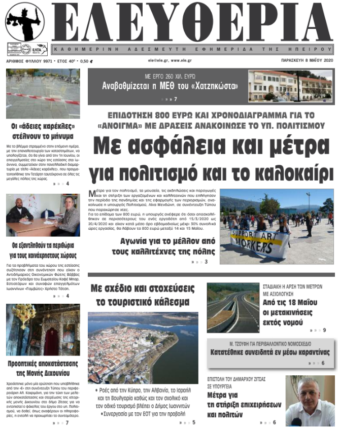 ΑρχικήΕΙΔΗΣΕΙΣΗΠΕΙΡΟΣ ΗΠΕΙΡΟΣ Τα πρωτοσέλιδα των γιαννιώτικων εφημερίδων 08.05.2020 223 FacebookTwitterWhatsAppEmailΤυπώνωViber Διαβάστε στα πρωτοσέλιδα των γιαννιώτικων εφημερίδων σήμερα, Παρασκευή 8 Μαΐου. TagsΓΙΑΝΝΙΩΤΙΚΕΣ ΕΦΗΜΕΡΙΔΕΣΠΡΩΤΟΣΕΛΙΔΑ FacebookTwitterWhatsAppEmailΤυπώνωViber Προηγούμενο άρθροΚανένα θετικό κρούσμα στη δομή φιλοξενίας στον ΚατσικάΕπόμενο άρθροΠέθανε ο Δημήτρης Κρεμαστινός ΣΧΕΤΙΚΑ ΑΡΘΡΑ Τα πρωτοσέλιδα των γιαννιώτικων εφημερίδων TOP STORIES 19.11.2025 Τα πρωτοσέλιδα των γιαννιώτικων εφημερίδων ΗΠΕΙΡΟΣ 18.11.2025 Τα πρωτοσέλιδα των γιαννιώτικων εφημερίδων ΗΠΕΙΡΟΣ 15.11.2025 Τα πρωτοσέλιδα των γιαννιώτικων εφημερίδων ΗΠΕΙΡΟΣ 14.11.2025 Τα πρωτοσέλιδα των γιαννιώτικων εφημερίδων ΗΠΕΙΡΟΣ 13.11.2025 Τα πρωτοσέλιδα των γιαννιώτικων εφημερίδων ΗΠΕΙΡΟΣ 12.11.2025 ΣΤΗΝ ΙΔΙΑ ΚΑΤΗΓΟΡΙΑ Αντλήσεις υδάτων και κλειστοί δρόμοι στη Θεσπρωτία ΗΠΕΙΡΟΣ 19.11.2025 Ζημιές σε ηλεκτρικές συσκευές από τον κεραυνό που έπεσε σε στέγη ΗΠΕΙΡΟΣ 19.11.2025 Επίσκεψη μελών του κινήματος ΝΙΚΗΣ στη Διεύθυνση Δευτεροβάθμιας Εκπαίδευσης ΗΠΕΙΡΟΣ 19.11.2025 Ισχυρή κακοκαιρία στην Ήπειρο – Ζημιές, κατολισθήσεις και ρεκόρ βροχόπτωσης ΗΠΕΙΡΟΣ 19.11.2025 Στην Ήπειρο τα μεγαλύτερα ύψη βροχής TOP STORIES 19.11.2025 ΑΔΕΔΥ Ιωαννίνων: Τα αποτελέσματα των εκλογών για τη νέα Εκτελεστική Γραμματεία ΗΠΕΙΡΟΣ 19.11.2025 ΜΗ ΧΑΣΕΤΕ Αντλήσεις υδάτων και κλειστοί δρόμοι στη Θεσπρωτία Ζημιές σε ηλεκτρικές συσκευές από τον κεραυνό που έπεσε σε στέγη Στην Ήπειρο τα μεγαλύτερα ύψη βροχής Νέες ρυθμίσεις για υπερχρεωμένους οφειλέτες, voucher για πρόληψη της οικονομικής κατάρρευσης Στο επίκεντρο ο ρόλος των νοσηλευτών ΔΗΜΟΦΙΛΗ Πολωνία: Σήκωσε εκτάκτως μαχητικά μετά τις νέες επιθέσεις της Ρωσίας στην Ουκρανία Κάλεσμα Σιόντη για στήριξη στον ΠΑΣ εν όψει Μακεδονικού Τουρισμός για Όλους 2025: Κληρώθηκαν οι δικαιούχοι της χαμηλής περιόδου Τρία ψηφιακά εργαλεία για την απαγόρευση πώλησης αλκοόλ και καπνού σε ανηλίκους Το Πωγώνι φωτίζεται στο φως του κινηματογράφου