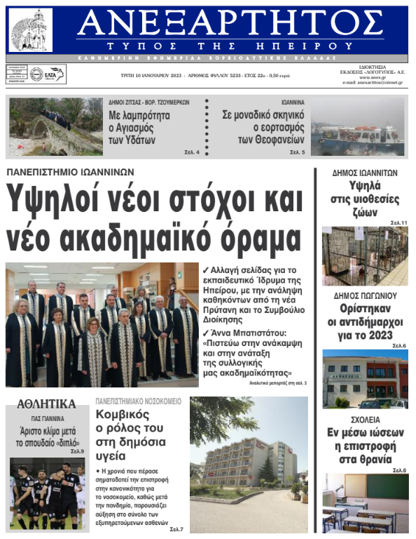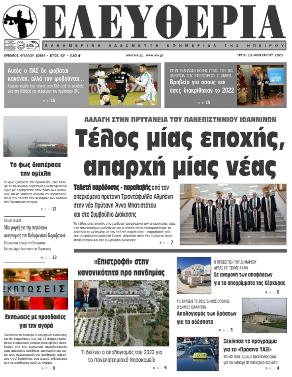 Διαβάστε στα πρωτοσέλιδα των γιαννιώτικων εφημερίδων της Τρίτης 10 Ιανουαρίου
