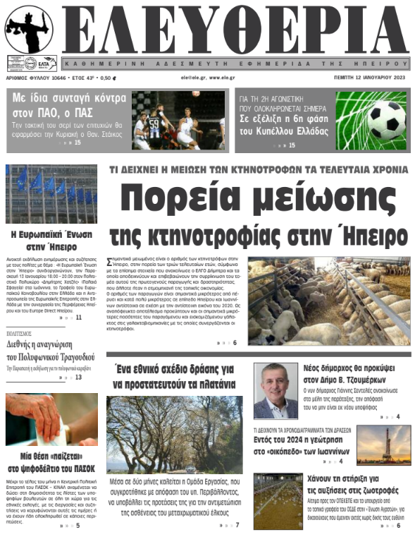 ΑρχικήΕΙΔΗΣΕΙΣΗΠΕΙΡΟΣ ΗΠΕΙΡΟΣ Τα πρωτοσέλιδα των γιαννιώτικων εφημερίδων 12.01.2023 359 FacebookTwitterWhatsAppEmailΤυπώνωViber Διαβάστε στα πρωτοσέλιδα των γιαννιώτικων εφημερίδων της Πέμπτης 12 Ιανουαρίου TagsΓΙΑΝΝΙΩΤΙΚΕΣ ΕΦΗΜΕΡΙΔΕΣΠΡΩΤΟΣΕΛΙΔΑ FacebookTwitterWhatsAppEmailΤυπώνωViber Προηγούμενο άρθροΕΟΠΥΥ: Τα 15 ακριβά φάρμακα για τα οποία απαιτείται ηλεκτρονική προέγκριση (λίστα)Επόμενο άρθροΧάνουν τη στήριξη για τις αυξήσεις στις ζωοτροφές ΣΧΕΤΙΚΑ ΑΡΘΡΑ Τα πρωτοσέλιδα των γιαννιώτικων εφημερίδων TOP STORIES 22.11.2025 Τα πρωτοσέλιδα των γιαννιώτικων εφημερίδων ΗΠΕΙΡΟΣ 21.11.2025 Τα πρωτοσέλιδα των γιαννιώτικων εφημερίδων TOP STORIES 20.11.2025 Τα πρωτοσέλιδα των γιαννιώτικων εφημερίδων ΗΠΕΙΡΟΣ 19.11.2025 Τα πρωτοσέλιδα των γιαννιώτικων εφημερίδων ΗΠΕΙΡΟΣ 18.11.2025 Τα πρωτοσέλιδα των γιαννιώτικων εφημερίδων ΗΠΕΙΡΟΣ 15.11.2025 ΣΤΗΝ ΙΔΙΑ ΚΑΤΗΓΟΡΙΑ Τροχαίο με δύο τραυματίες στην Καστρίτσα από εκτροπή ΙΧ ΗΠΕΙΡΟΣ 23.11.2025 Κλειστός ο δρόμος Παλαιοχωρίου–Συρράκου λόγω καθίζησης ΗΠΕΙΡΟΣ 23.11.2025 Τραγωδία στους Κιρκιζάτες με έναν νεκρό και μία γυναίκα σε νοσηλεία ΗΠΕΙΡΟΣ 23.11.2025 Βροχές, χιόνια και χαμηλές θερμοκρασίες στην Ήπειρο ΗΠΕΙΡΟΣ 23.11.2025 Ενθρονίστηκε στο Δελβινάκι ο νέος Μητροπολίτης Αλέξιος ΗΠΕΙΡΟΣ 23.11.2025 Καθιζήσεις, πλημμύρες και εκτεταμένες κατολισθήσεις στα Τζουμέρκα ΗΠΕΙΡΟΣ 23.11.2025 ΜΗ ΧΑΣΕΤΕ Βροχές, χιόνια και χαμηλές θερμοκρασίες στην Ήπειρο Ενθρονίστηκε στο Δελβινάκι ο νέος Μητροπολίτης Αλέξιος Καθιζήσεις, πλημμύρες και εκτεταμένες κατολισθήσεις στα Τζουμέρκα Ικανοποίηση για τη μείωση της ανεργίας Τα πρωτοσέλιδα των γιαννιώτικων εφημερίδων ΔΗΜΟΦΙΛΗ Ενθρονίστηκε στο Δελβινάκι ο νέος Μητροπολίτης Αλέξιος Βροχές, χιόνια και χαμηλές θερμοκρασίες στην Ήπειρο Καθιζήσεις, πλημμύρες και εκτεταμένες κατολισθήσεις στα Τζουμέρκα Κλειστός ο δρόμος Παλαιοχωρίου–Συρράκου λόγω καθίζησης ΣΤΟΙΧΕΙΑ ΤΗΣ ΕΛΣΤΑΤ -Αυξήθηκαν οι συμβολαιογραφικές πράξεις