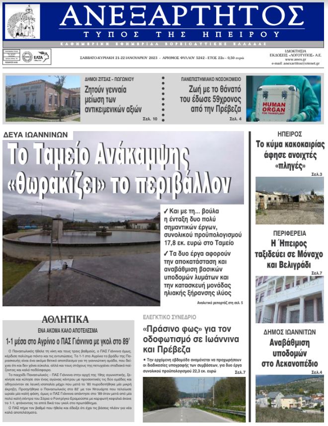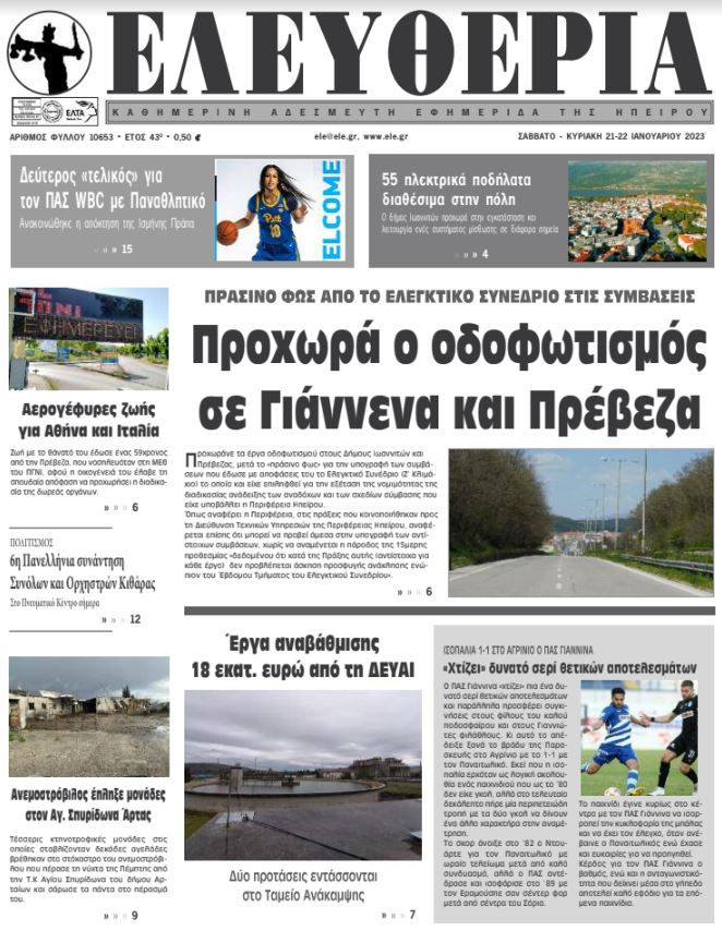 ΑρχικήTOP STORIES TOP STORIESΗΠΕΙΡΟΣ Tα πρωτοσέλιδα των γιαννιώτικων εφημερίδων 21.01.2023 385 FacebookTwitterWhatsAppEmailΤυπώνωViber Διαβάστε στα πρωτοσέλιδα των γιαννιώτικων εφημερίδων 21-23 Ιανουαρίου TagsΓΙΑΝΝΙΩΤΙΚΕΣ ΕΦΗΜΕΡΙΔΕΣΠΡΩΤΟΣΕΛΙΔΑ FacebookTwitterWhatsAppEmailΤυπώνωViber Προηγούμενο άρθροΜε το Fast Pass πας παντού, τώρα και με εκπτώσεις έως 50%!Επόμενο άρθροΡΕΥΜΑ -Νέο «ηλεκτροσόκ» με άλμα τιμής ΣΧΕΤΙΚΑ ΑΡΘΡΑ Τα πρωτοσέλιδα των γιαννιώτικων εφημερίδων TOP STORIES 03.12.2025 Τα πρωτοσέλιδα των γιαννιώτικων εφημερίδων TOP STORIES 02.12.2025 Τα πρωτοσέλιδα των γιαννιώτικων εφημερίδων ΗΠΕΙΡΟΣ 29.11.2025 Τα πρωτοσέλιδα των γιαννιώτικων εφημερίδων ΗΠΕΙΡΟΣ 28.11.2025 Τα πρωτοσέλιδα των γιαννιώτικων εφημερίδων ΗΠΕΙΡΟΣ 27.11.2025 Τα πρωτοσέλιδα των γιαννιώτικων εφημερίδων ΗΠΕΙΡΟΣ 26.11.2025 ΣΤΗΝ ΙΔΙΑ ΚΑΤΗΓΟΡΙΑ Κέρκυρα: Αυτοκίνητο έπεσε σε ποτάμι από ύψος 7 μέτρων -Επέβαιναν μητέρα και κόρη ΗΠΕΙΡΟΣ 03.12.2025 «Όλοι μαζί, χωρίς εμπόδια» ΗΠΕΙΡΟΣ 03.12.2025 Με μηνύσεις «απαντά» η Περιφέρεια Ηπείρου ΗΠΕΙΡΟΣ 03.12.2025 Εθελοντική αιμοδοσία στην Περιφέρεια Ηπείρου ΗΠΕΙΡΟΣ 03.12.2025 Συνεχίζονται οι κινητοποιήσεις των αγροτών στο μπλόκο Καλπακίου ΗΠΕΙΡΟΣ 03.12.2025 Δράσεις για την Παγκόσμια Ημέρα Ατόμων με Αναπηρία ΗΠΕΙΡΟΣ 03.12.2025 ΜΗ ΧΑΣΕΤΕ Με μηνύσεις «απαντά» η Περιφέρεια Ηπείρου Συνεχίζονται οι κινητοποιήσεις των αγροτών στο μπλόκο Καλπακίου Συντονισμός για την αντιμετώπιση έντονων καιρικών φαινομένων Έκτακτο δελτίο της ΕΜΥ για καταιγίδες, χαλαζοπτώσεις και ισχυρούς ανέμους Αγέλες αδέσποτων προκαλούν καθυστερήσεις στη διανομή των ΕΛΤΑ ΔΗΜΟΦΙΛΗ Στο 1ο Πολυθεματικό Συνέδριο ΟΤΑ στα Ιωάννινα ο Καθηγητής Ευθ. Λέκκας Απεργία ταξί: Παρατείνεται μέχρι την Παρασκευή Αγρότες στoν Προμαχώνα «έσπασαν» το μπλόκο των αστυνομικών Ακραία φαινόμενα με χαλάζι, κεραυνούς και ανεμοστρόβιλους φέρνει η νέα κακοκαιρία Συντονισμός για την αντιμετώπιση έντονων καιρικών φαινομένων