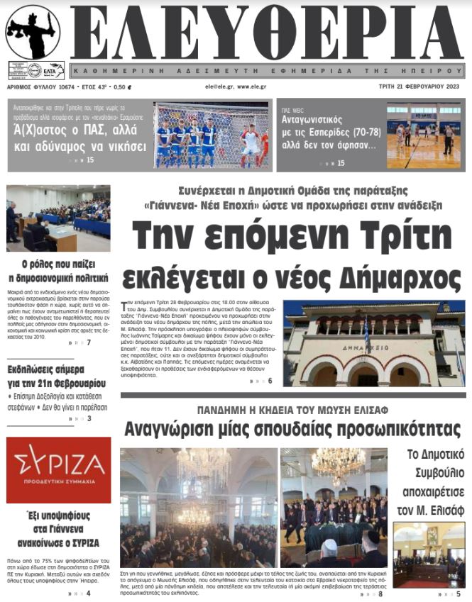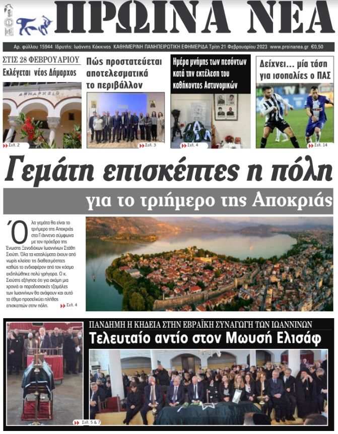 ΑρχικήΕΙΔΗΣΕΙΣΗΠΕΙΡΟΣ ΗΠΕΙΡΟΣ Τα πρωτοσέλιδα των γιαννιώτικων εφημερίδων 21.02.2023 285 FacebookTwitterWhatsAppEmailΤυπώνωViber Διαβάστε στα πρωτοσέλιδα των γιαννιώτικων εφημερίδων της Τρίτης 21 Φεβρουαρίου TagsΓΙΑΝΝΙΩΤΙΚΕΣ ΕΦΗΜΕΡΙΔΕΣΠΡΩΤΟΣΕΛΙΔΑ FacebookTwitterWhatsAppEmailΤυπώνωViber Προηγούμενο άρθροΗγουμενίτσα: Συνελήφθη με πακέτα ναρκωτικώνΕπόμενο άρθροΤα του Καίσαρος ΣΧΕΤΙΚΑ ΑΡΘΡΑ Τα πρωτοσέλιδα των γιαννιώτικων εφημερίδων TOP STORIES 11.11.2025 Τα πρωτοσέλιδα των γιαννιώτικων εφημερίδων TOP STORIES 08.11.2025 Τα πρωτοσέλιδα των γιαννιώτικων εφημερίδων ΗΠΕΙΡΟΣ 07.11.2025 Τα πρωτοσέλιδα των γιαννιώτικων εφημερίδων ΗΠΕΙΡΟΣ 06.11.2025 Τα πρωτοσέλιδα των γιαννιώτικων εφημερίδων ΗΠΕΙΡΟΣ 05.11.2025 Τα πρωτοσέλιδα των γιαννιώτικων εφημερίδων ΗΠΕΙΡΟΣ 04.11.2025 ΣΤΗΝ ΙΔΙΑ ΚΑΤΗΓΟΡΙΑ Ενημερωτική δράση για τον σακχαρώδη διαβήτη στα Ιωάννινα ΗΠΕΙΡΟΣ 11.11.2025 Συνελήφθη αλλοδαπός διωκόμενος στην Κακαβιά ΗΠΕΙΡΟΣ 11.11.2025 Κατασχέθηκαν 45 αρνιά στην Πρέβεζα – Δύο συλλήψεις ΗΠΕΙΡΟΣ 11.11.2025 43χρονος βρέθηκε νεκρός εντός Ι.Χ. στο Τέροβο ΗΠΕΙΡΟΣ 11.11.2025 Επί τάπητος υποδομές, περιβάλλον και ΤΠΣ ΗΠΕΙΡΟΣ 11.11.2025 Σε αυξημένη ετοιμότητα η Ήπειρος για τη γρίπη των πτηνών ΗΠΕΙΡΟΣ 11.11.2025 ΜΗ ΧΑΣΕΤΕ 43χρονος βρέθηκε νεκρός εντός Ι.Χ. στο Τέροβο Επίδομα θέρμανσης: Νέες οδηγίες της ΑΑΔΕ Σε αυξημένη ετοιμότητα η Ήπειρος για τη γρίπη των πτηνών Δωρεά ζωής από ασθενή στο ΠΓΝΙ Νέες αντιδράσεις για τις παρεμβάσεις στο Γράμμο ΔΗΜΟΦΙΛΗ Σκέψεις για φιλοξενία των ΕΛΤΑ στα ΚΕΠ Υπό έρευνα η Ελβετική Φρουρά στο Βατικανό Επί τάπητος υποδομές, περιβάλλον και ΤΠΣ Πώς η διατροφή επηρεάζει την οσμή του σώματος και την ελκυστικότητά μας Εορτασμός Ημέρας Ενόπλων Δυνάμεων στο Μολυβδοσκέπαστο