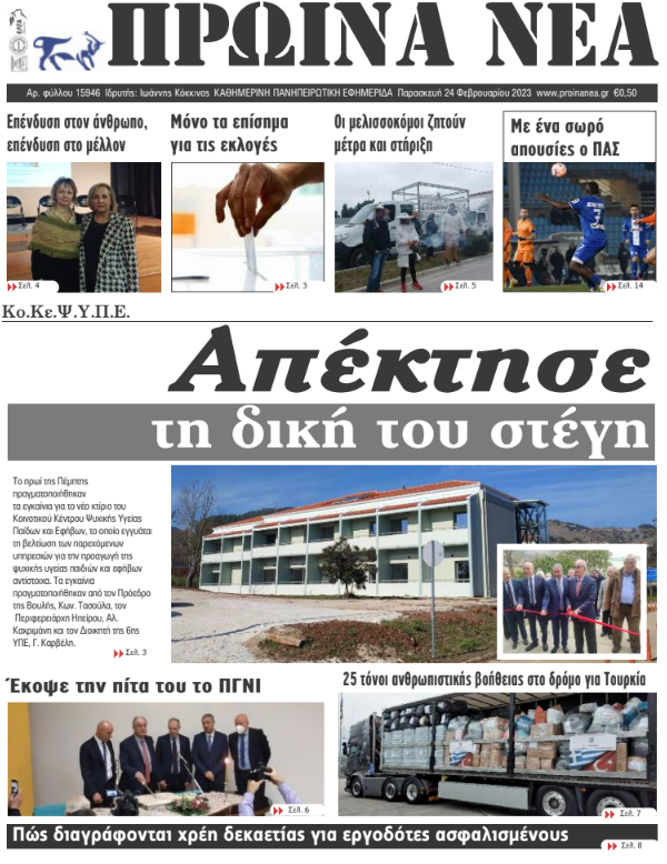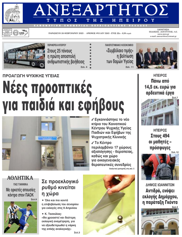 ΑρχικήΕΙΔΗΣΕΙΣΗΠΕΙΡΟΣ ΗΠΕΙΡΟΣ Τα πρωτοσέλιδα των γιαννιώτικων εφημερίδων 24.02.2023 430 FacebookTwitterWhatsAppEmailΤυπώνωViber Διαβάστε στα πρωτοσέλιδα της Παρασκευής 24 Φεβρουαρίου TagsΓΙΑΝΝΙΩΤΙΚΕΣ ΕΦΗΜΕΡΙΔΕΣΠΡΩΤΟΣΕΛΙΔΑ FacebookTwitterWhatsAppEmailΤυπώνωViber Προηγούμενο άρθροΖημιές στο εσωτερικό της «Όασης» από πυρκαγιά σε σόμπα υγραερίουΕπόμενο άρθροΟ δρόμος σου προς το μέλλον περνάει μέσα από το Deree! ΣΧΕΤΙΚΑ ΑΡΘΡΑ Τα πρωτοσέλιδα των γιαννιώτικων εφημερίδων TOP STORIES 14.01.2026 Τα πρωτοσέλιδα των γιαννιώτικων εφημερίδων ΗΠΕΙΡΟΣ 13.01.2026 Τα πρωτοσέλιδα των γιαννιώτικων εφημερίδων ΗΠΕΙΡΟΣ 11.01.2026 Τα πρωτοσέλιδα των γιαννιώτικων εφημερίδων ΗΠΕΙΡΟΣ 09.01.2026 Τα πρωτοσέλιδα των γιαννιώτικων εφημερίδων ΗΠΕΙΡΟΣ 08.01.2026 Τα πρωτοσέλιδα των γιαννιώτικων εφημερίδων ΗΠΕΙΡΟΣ 06.01.2026 ΣΤΗΝ ΙΔΙΑ ΚΑΤΗΓΟΡΙΑ Συνάντηση για τα προβλήματα και τις προτεραιότητες του Δήμου Βορ. Τζουμέρκων ΗΠΕΙΡΟΣ 14.01.2026 Οδηγούσε χωρίς δίπλωμα ΗΠΕΙΡΟΣ 14.01.2026 Ιωάννινα: Συνελήφθη για βιασμό και πορνογραφία ανηλίκων ΗΠΕΙΡΟΣ 14.01.2026 Παραμένει Διοικητής της 8ης Μ/Π Ταξιαρχίας ο Βασ. Κολιός ΗΠΕΙΡΟΣ 14.01.2026 Νέος Συντονιστής Επιχειρήσεων σε Ήπειρο – Δυτ. Μακεδονία ο Ζ. Γιώτης ΗΠΕΙΡΟΣ 14.01.2026 Διαβεβαιώσεις για την καταβολή της μισθοδοσίας στους εργαζόμενους ΗΠΕΙΡΟΣ 14.01.2026 ΜΗ ΧΑΣΕΤΕ Παραλία Μονολιθίου: Οικολογική καταστροφή που δικαιώνει τους κατοίκους Κόνιτσα–Καλπάκι: 13 μήνες μετά τις εξαγγελίες, το έργο παραμένει «στα χαρτιά» Πυρ ομαδόν για τις περιβαλλοντικές επιπτώσεις Στην αγορά για αναζήτηση χώρων στάθμευσης «Οδηγός» για το Βελισσάριο, το Πάρκο Πυρσινέλλα ΔΗΜΟΦΙΛΗ Επιβεβαίωση της στρατηγικής δυναμικής στις σχέσεις Ελλάδας–Σαουδικής Αραβίας Νέος Συντονιστής Επιχειρήσεων σε Ήπειρο – Δυτ. Μακεδονία ο Ζ. Γιώτης Συνεχίζεται η αγωνία για την 16χρονη που αγνοείται στην Πάτρα Η Artemis II φέρνει την επιστροφή των ΗΠΑ στη Σελήνη Αποχρώσεις