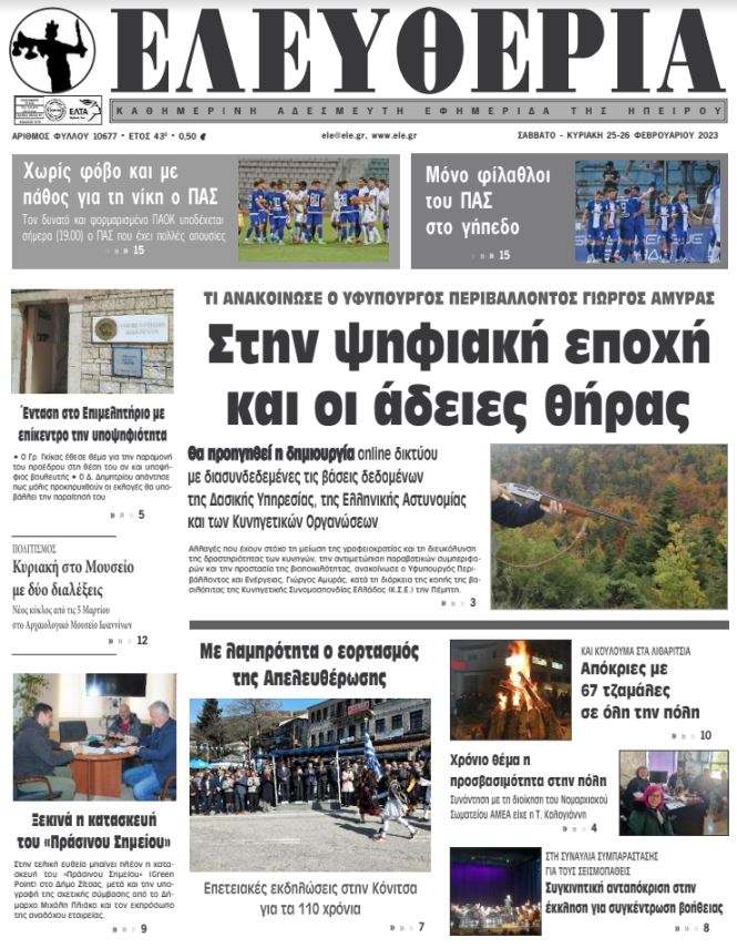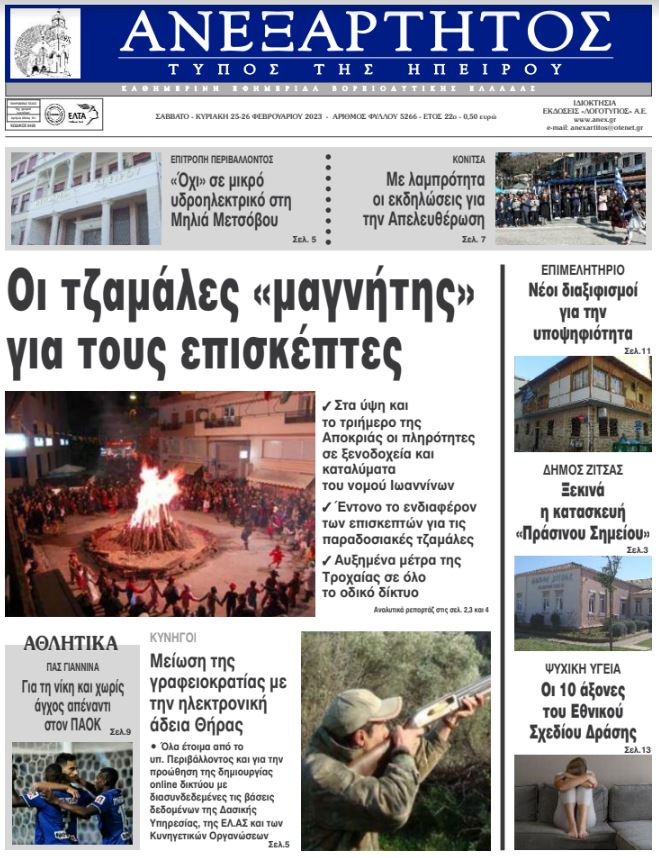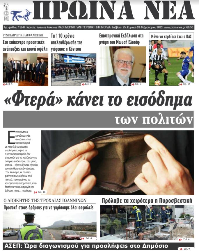 Διαβάστε στα πρωτοσέλιδα των γιαννιώτικων εφημερίδων 25-27 Φεβρουαρίου