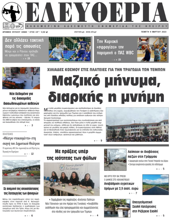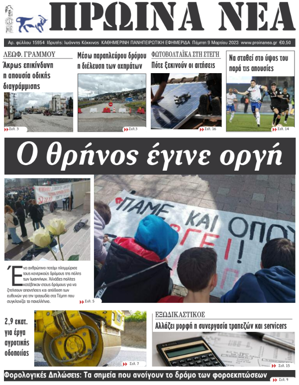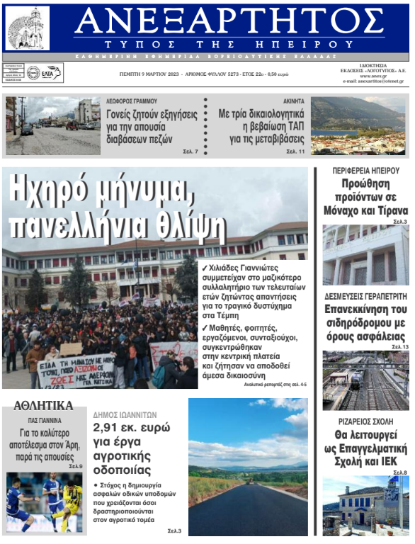 Διαβάστε στα πρωτοσέλιδα των γιαννιώτικων εφημερίδων της Πέμπτης 9 Μαρτίου