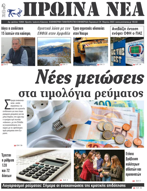Διαβάστε στα πρωτοσέλιδα των γιαννιώτικων εφημερίδων της Παρασκευής 24 Μαρτίου