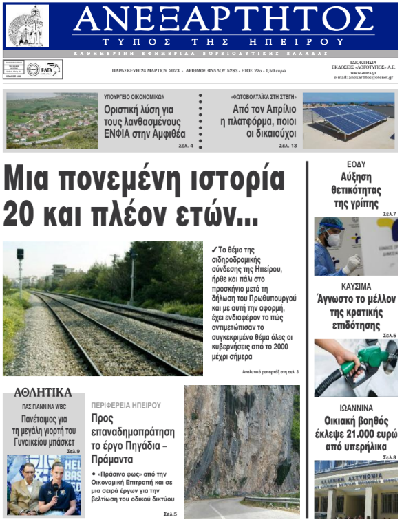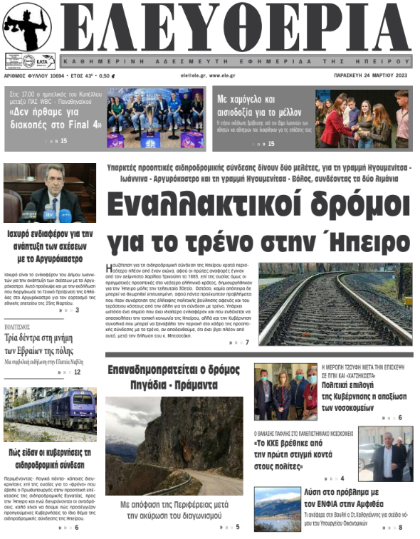 Διαβάστε στα πρωτοσέλιδα των γιαννιώτικων εφημερίδων της Παρασκευής 24 Μαρτίου