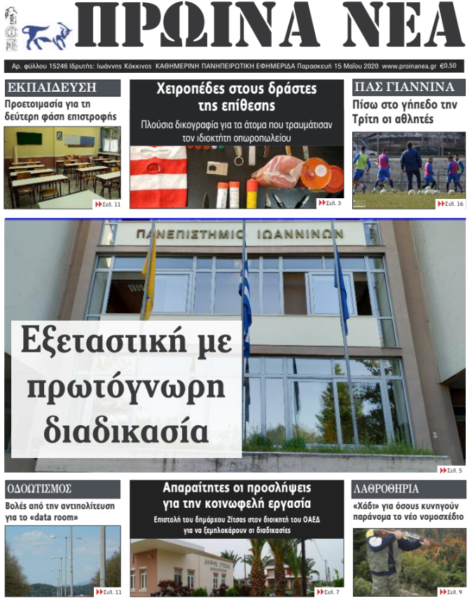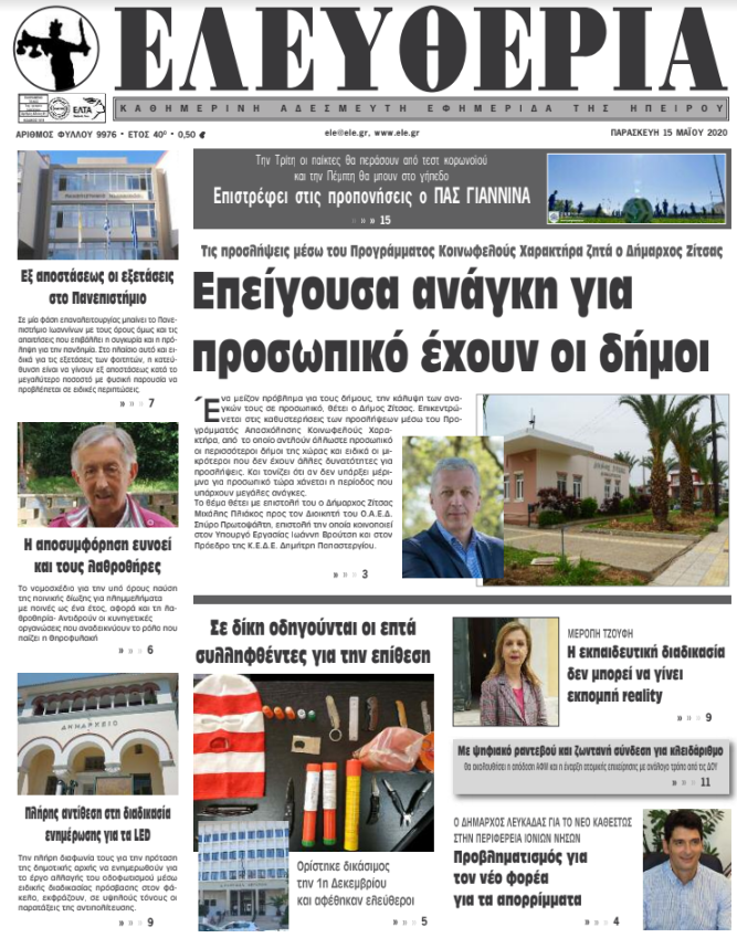 ΑρχικήΕΙΔΗΣΕΙΣΗΠΕΙΡΟΣ ΗΠΕΙΡΟΣ Τα πρωτοσέλιδα των γιαννιώτικων εφημερίδων 15.05.2020 217 FacebookTwitterWhatsAppEmailΤυπώνωViber Διαβάστε στα πρωτοσέλιδα των γιαννιώτικων εφημερίδων σήμερα, Παρασκευή 15 Μαΐου. TagsΓΙΑΝΝΙΩΤΙΚΕΣ ΕΦΗΜΕΡΙΔΕΣΠΡΩΤΟΣΕΛΙΔΑ FacebookTwitterWhatsAppEmailΤυπώνωViber Προηγούμενο άρθροΧαρδαλιάς για παραλίες: «Πρόστιμα έως και 20.000 ευρώ στους παραβάτες»Επόμενο άρθροΈνας κρατήρας της ενεργούς τέχνης ΣΧΕΤΙΚΑ ΑΡΘΡΑ Τα πρωτοσέλιδα των γιαννιώτικων εφημερίδων TOP STORIES 08.11.2025 Τα πρωτοσέλιδα των γιαννιώτικων εφημερίδων ΗΠΕΙΡΟΣ 07.11.2025 Τα πρωτοσέλιδα των γιαννιώτικων εφημερίδων ΗΠΕΙΡΟΣ 06.11.2025 Τα πρωτοσέλιδα των γιαννιώτικων εφημερίδων ΗΠΕΙΡΟΣ 05.11.2025 Τα πρωτοσέλιδα των γιαννιώτικων εφημερίδων ΗΠΕΙΡΟΣ 04.11.2025 Τα πρωτοσέλιδα των γιαννιώτικων εφημερίδων TOP STORIES 01.11.2025 ΣΤΗΝ ΙΔΙΑ ΚΑΤΗΓΟΡΙΑ Τα πρωτοσέλιδα των γιαννιώτικων εφημερίδων TOP STORIES 08.11.2025 Μαθητές του 5ου Γυμνασίου Ιωαννίνων στην κορυφή του Μιτσικελίου ΗΠΕΙΡΟΣ 07.11.2025 Επίτιμος Διδάκτορας του Τμήματος Φιλολογίας ο Γιώργος Κεχαγιόγλου ΗΠΕΙΡΟΣ 07.11.2025 Οι ναυαγοσωστικές δαπάνες «πνίγουν» τους δήμους ΗΠΕΙΡΟΣ 07.11.2025 Ενημερωτική ημερίδα στα Ιωάννινα για τη δωρεά και μεταμόσχευση οργάνων ΗΠΕΙΡΟΣ 07.11.2025 Εγκαίνια στο Κατάστημα Αναμνηστικών του Πανεπιστημίου Ιωαννίνων ΗΠΕΙΡΟΣ 07.11.2025 ΜΗ ΧΑΣΕΤΕ Τα πρωτοσέλιδα των γιαννιώτικων εφημερίδων Οι ναυαγοσωστικές δαπάνες «πνίγουν» τους δήμους Έκτακτο δελτίο επιδείνωσης από την ΕΜΥ – Πού θα βρέχει το επόμενο τριήμερο Μπαλωθιές τέλος στην Κρήτη – Τα μέτρα για την παράνομη οπλοκατοχή Χωρίς πινακίδες παραμένουν χιλιάδες δίκυκλα ΔΗΜΟΦΙΛΗ Τα πρωτοσέλιδα των γιαννιώτικων εφημερίδων Ιταλία: Αυξάνονται οι αιωνόβιοι στη χώρα -2.000 περισσότεροι σε σχέση με πέρυσι Γ. ΣΤΥΛΙΟΣ -Μείωση φόρων που ενισχύει το πραγματικό εισόδημα Η Ευρωπαϊκή Ένωση στηρίζει την καθαρή μετάβαση ΤΗΝ ΔΕΥΤΕΡΑ -Νομαρχιακή Συνδιάσκεψη του ΣΥΡΙΖΑ ΠΣ Ιωαννίνων