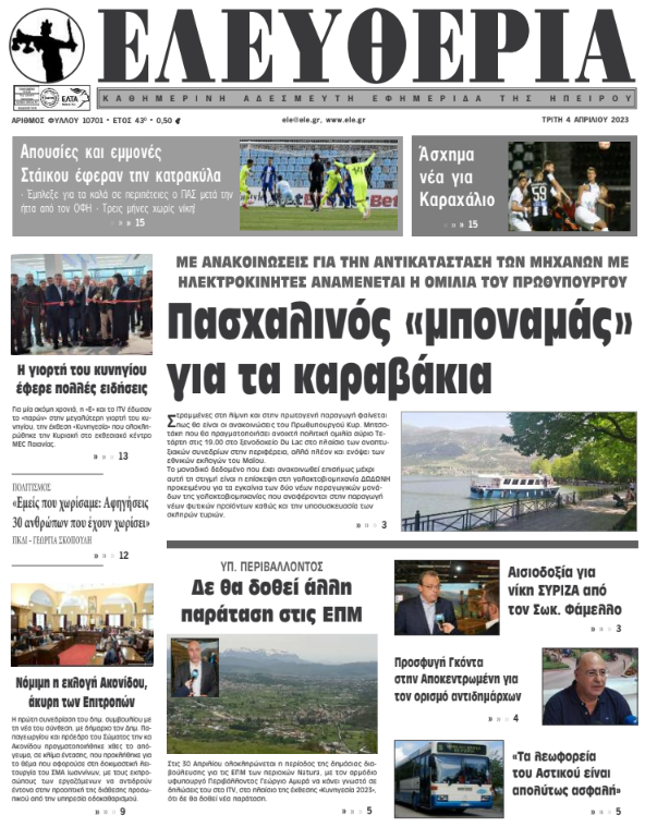 ΑρχικήΕΙΔΗΣΕΙΣΗΠΕΙΡΟΣ ΗΠΕΙΡΟΣ Τα πρωτοσέλιδα των γιαννιώτικων εφημερίδων 04.04.2023 346 FacebookTwitterWhatsAppEmailΤυπώνωViber Διαβάστε στα πρωτοσέλιδα των γιαννιώτικων εφημερίδων της Τρίτης 4 Απριλίου TagsΓΙΑΝΝΙΩΤΙΚΕΣ ΕΦΗΜΕΡΙΔΕΣΠΡΩΤΟΣΕΛΙΔΑ FacebookTwitterWhatsAppEmailΤυπώνωViber Προηγούμενο άρθροΠρέβεζα: Διασωληνωμένη 12χρονη που παρασύρθηκε από ΙΧΕπόμενο άρθροΑνακοινώσεις για τα καραβάκια από τον Πρωθυπουργό ΣΧΕΤΙΚΑ ΑΡΘΡΑ Τα πρωτοσέλιδα των γιαννιώτικων εφημερίδων TOP STORIES 29.11.2025 Τα πρωτοσέλιδα των γιαννιώτικων εφημερίδων ΗΠΕΙΡΟΣ 28.11.2025 Τα πρωτοσέλιδα των γιαννιώτικων εφημερίδων ΗΠΕΙΡΟΣ 27.11.2025 Τα πρωτοσέλιδα των γιαννιώτικων εφημερίδων ΗΠΕΙΡΟΣ 26.11.2025 Τα πρωτοσέλιδα των γιαννιώτικων εφημερίδων ΗΠΕΙΡΟΣ 25.11.2025 Τα πρωτοσέλιδα των γιαννιώτικων εφημερίδων ΗΠΕΙΡΟΣ 22.11.2025 ΣΤΗΝ ΙΔΙΑ ΚΑΤΗΓΟΡΙΑ Βγαίνουν και στους δρόμους της Ηπείρου τα τρακτέρ ΗΠΕΙΡΟΣ 29.11.2025 Στο Προεδρικό Μέγαρο η ομάδα I-GEM Ioannina ΗΠΕΙΡΟΣ 29.11.2025 Σχέδιο για Παιδοψυχιατρική Κλινική στα Ιωάννινα ΗΠΕΙΡΟΣ 29.11.2025 Τα προβλήματα να γίνουν αφορμή για βελτίωση ΗΠΕΙΡΟΣ 29.11.2025 Μαζική διαμαρτυρία για την κεραία δίπλα στο σχολείο ΗΠΕΙΡΟΣ 29.11.2025 Κοινή ευθύνη η ανθεκτικότητα των πόλεων ΗΠΕΙΡΟΣ 29.11.2025 ΜΗ ΧΑΣΕΤΕ Στο Προεδρικό Μέγαρο η ομάδα I-GEM Ioannina Σχέδιο για Παιδοψυχιατρική Κλινική στα Ιωάννινα Τα προβλήματα να γίνουν αφορμή για βελτίωση Μαζική διαμαρτυρία για την κεραία δίπλα στο σχολείο Κοινή ευθύνη η ανθεκτικότητα των πόλεων ΔΗΜΟΦΙΛΗ 15 Δεκεμβρίου οι εξετάσεις για άδεια φαρμακοποιού Τα πρωτοσέλιδα των γιαννιώτικων εφημερίδων Βγαίνουν και στους δρόμους της Ηπείρου τα τρακτέρ Στο Προεδρικό Μέγαρο η ομάδα I-GEM Ioannina Σχέδιο για Παιδοψυχιατρική Κλινική στα Ιωάννινα