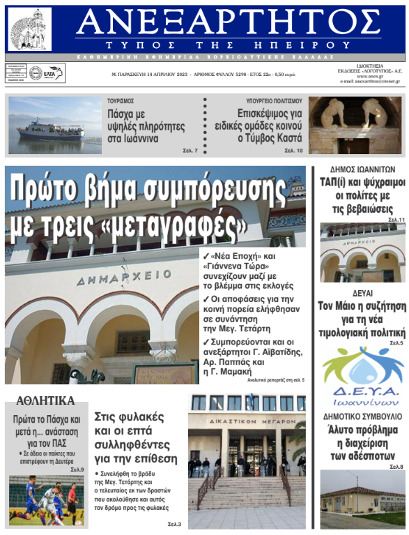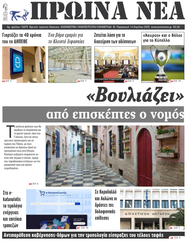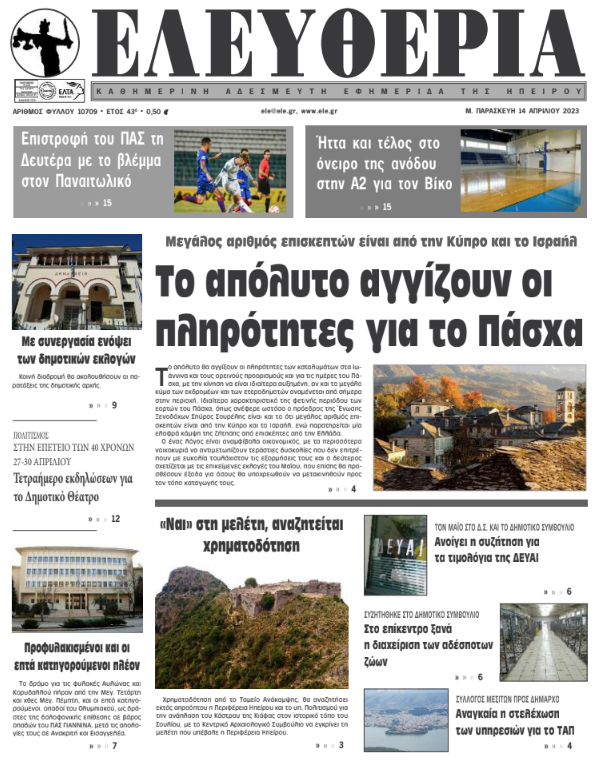 ΑρχικήΕΙΔΗΣΕΙΣΗΠΕΙΡΟΣ ΗΠΕΙΡΟΣ Τα πρωτοσέλιδα των γιαννιώτικων εφημερίδων 14.04.2023 1404 FacebookTwitterWhatsAppEmailΤυπώνωViber Διαβάστε στα πρωτοσέλιδα των γιαννιώτικων εφημερίδων της Μ. Παρασκευής 14 Απριλίου TagsΓΙΑΝΝΙΩΤΙΚΕΣ ΕΦΗΜΕΡΙΔΕΣΠΡΩΤΟΣΕΛΙΔΑ FacebookTwitterWhatsAppEmailΤυπώνωViber Προηγούμενο άρθροΤέμπη: Εξιτήριο για 26χρονη τραυματία 44 μέρες μετά το δυστύχημαΕπόμενο άρθροΣτο επίκεντρο ξανά η διαχείριση των αδέσποτων ζώων ΣΧΕΤΙΚΑ ΑΡΘΡΑ Τα πρωτοσέλιδα των γιαννιώτικων εφημερίδων TOP STORIES 10.12.2025 Τα πρωτοσέλιδα των γιαννιώτικων εφημερίδων ΗΠΕΙΡΟΣ 09.12.2025 Τα πρωτοσέλιδα των γιαννιώτικων εφημερίδων ΗΠΕΙΡΟΣ 06.12.2025 Τα πρωτοσέλιδα των γιαννιώτικων εφημερίδων ΗΠΕΙΡΟΣ 05.12.2025 Τα πρωτοσέλιδα των γιαννιώτικων εφημερίδων ΗΠΕΙΡΟΣ 04.12.2025 Τα πρωτοσέλιδα των γιαννιώτικων εφημερίδων ΗΠΕΙΡΟΣ 03.12.2025 ΣΤΗΝ ΙΔΙΑ ΚΑΤΗΓΟΡΙΑ Εξαρθρώθηκε συμμορία που διακινούσε ναρκωτικά στα Γιάννενα ΗΠΕΙΡΟΣ 10.12.2025 Βρέθηκε η σορός του 63χρονου ψαρά στον Λύχνο ΗΠΕΙΡΟΣ 10.12.2025 Μήνυμα κατά της έμφυλης βίας και υπέρ της γυναικείας επιχειρηματικότητας ΗΠΕΙΡΟΣ 10.12.2025 Αποστάσεις της Περιφέρειας από τις εκτιμήσεις ζημιών στα Τζουμέρκα ΗΠΕΙΡΟΣ 10.12.2025 Μια νέα πρόταση για την ενοποίηση της πλατείας Ιωαννίνων ΗΠΕΙΡΟΣ 10.12.2025 Τα πρωτοσέλιδα των γιαννιώτικων εφημερίδων TOP STORIES 10.12.2025 ΜΗ ΧΑΣΕΤΕ Εισαγγελική παρέμβαση για τις αγροτικές κινητοποιήσεις Μια νέα πρόταση για την ενοποίηση της πλατείας Ιωαννίνων Τα πρωτοσέλιδα των γιαννιώτικων εφημερίδων Εγκρίθηκε η χωροθέτηση των νέων «έξυπνων» υποδομών Ξεκινούν οι εργασίες για την προστασία της Παμβώτιδας ΔΗΜΟΦΙΛΗ Η Μπάφρα τιμά την κληρονομιά του Δυτικού Πόντου Αποστάσεις της Περιφέρειας από τις εκτιμήσεις ζημιών στα Τζουμέρκα Έκτακτη σύσκεψη για τις πληρωμές των αγροτών στο Μαξίμου Ώρα αποφάσεων για τον ΠΑΣ Γιάννινα Αγροτικές κινητοποιήσεις: Δικογραφίες από την Αστυνομία για παρακώλυση συγκοινωνιών
