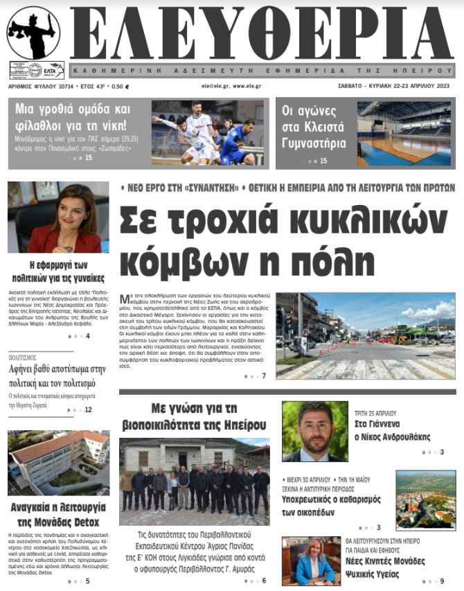 ΑρχικήTOP STORIES TOP STORIESΗΠΕΙΡΟΣ Τα πρωτοσέλιδα των γιαννιώτικων εφημερίδων 22.04.2023 1409 FacebookTwitterWhatsAppEmailΤυπώνωViber Διαβάστε στα πρωτοσέλιδα των γιαννιώτικων εφημερίδων 22-23 Απριλίου TagsΓΙΑΝΝΙΩΤΙΚΕΣ ΕΦΗΜΕΡΙΔΕΣΠΡΩΤΟΣΕΛΙΔΑ FacebookTwitterWhatsAppEmailΤυπώνωViber Προηγούμενο άρθροΑΕΙ: Κατεβάστε το πτυχίο σας με ένα κλικ στο gov.grΕπόμενο άρθροΑπό έναν κυκλικό κόμβο ως την άσκηση υψηλής πολιτικής ΣΧΕΤΙΚΑ ΑΡΘΡΑ Τα πρωτοσέλιδα των γιαννιώτικων εφημερίδων ΗΠΕΙΡΟΣ 04.11.2025 Τα πρωτοσέλιδα των γιαννιώτικων εφημερίδων TOP STORIES 01.11.2025 Τα πρωτοσέλιδα των γιαννιώτικων εφημερίδων ΗΠΕΙΡΟΣ 31.10.2025 Τα πρωτοσέλιδα των γιαννιώτικων εφημερίδων ΗΠΕΙΡΟΣ 30.10.2025 Τα πρωτοσέλιδα των γιαννιώτικων εφημερίδων ΗΠΕΙΡΟΣ 28.10.2025 Τα πρωτοσέλιδα των γιαννιώτικων εφημερίδων ΗΠΕΙΡΟΣ 25.10.2025 ΣΤΗΝ ΙΔΙΑ ΚΑΤΗΓΟΡΙΑ Η ΠΕΝΤΕ Α.Ε. απαντά στις καταγγελίες και υπερασπίζεται τη διαφάνεια στη συμφωνία με την «ΠΑΠΑΓΕΩΡΓΙΟΥ» ΗΠΕΙΡΟΣ 04.11.2025 Νέα δημοτική αγορά και παρεμβάσεις αναβάθμισης στην Αγία Μαρίνα ΗΠΕΙΡΟΣ 04.11.2025 Συμβολικές κινητοποιήσεις σε Μέτσοβο και Πωγώνι για τα καταστήματα ΕΛΤΑ ΗΠΕΙΡΟΣ 04.11.2025 Κινητοποίηση για τη διατήρηση του καταστήματος των ΕΛΤΑ Πραμάντων ΗΠΕΙΡΟΣ 04.11.2025 Κανένα θανατηφόρο τροχαίο φέτος τον Οκτώβριο TOP STORIES 04.11.2025 Εξιχνιάστηκε κλοπή από επιχείρηση στην Πρέβεζα ΗΠΕΙΡΟΣ 04.11.2025 ΜΗ ΧΑΣΕΤΕ Νέα δημοτική αγορά και παρεμβάσεις αναβάθμισης στην Αγία Μαρίνα Κανένα θανατηφόρο τροχαίο φέτος τον Οκτώβριο Ανοίγει η πλατφόρμα για το επίδομα θέρμανσης ΕΛΤΑ – Τρίμηνη αναστολή και κινητοποιήσεις στην Ήπειρο Εισαγγελική εντολή για την άμεση απομάκρυνση αποβλήτων ΔΗΜΟΦΙΛΗ Νεκροί επτά ορειβάτες μετά από χιονοστιβάδα στο Νεπάλ Ποια χώρα προσφέρει τρεις ώρες δωρεάν ηλιακής ενέργειας την ημέρα Εγκαίνια στο κατάστημα αναμνηστικών του Πανεπιστημίου Εισαγγελική εντολή για την άμεση απομάκρυνση αποβλήτων Πανσέληνος Νοεμβρίου: Πότε θα απολαύσουμε το «Φεγγάρι του Κάστορα»
