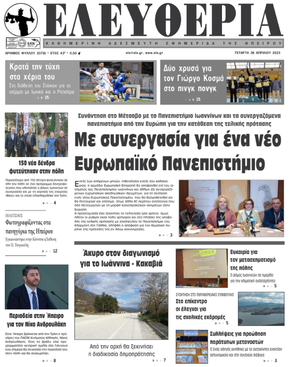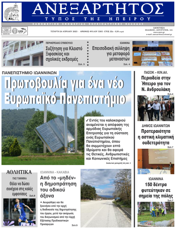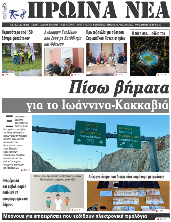 Διαβάστε στα πρωτοσέλιδα των γιαννιώτικων εφημερίδων της Τετάρτης 26 Απριλίου