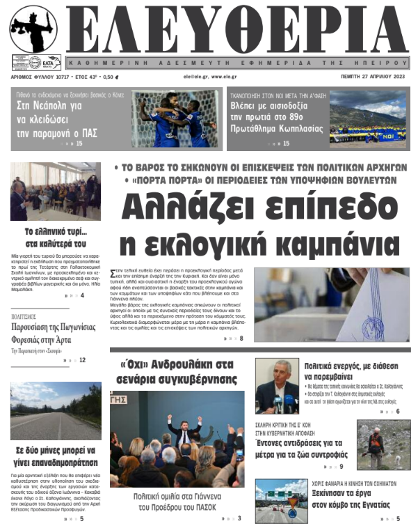 ΑρχικήTOP STORIES TOP STORIESΗΠΕΙΡΟΣ Τα πρωτοσέλιδα των γιαννιώτικων εφημερίδων 27.04.2023 1475 FacebookTwitterWhatsAppEmailΤυπώνωViber Διαβάστε στα πρωτοσέλιδα των γιαννιώτικων εφημερίδων της Πέμπτης 27 Απριλίου TagsΓΙΑΝΝΙΩΤΙΚΕΣ ΕΦΗΜΕΡΙΔΕΣΠΡΩΤΟΣΕΛΙΔΑ FacebookTwitterWhatsAppEmailΤυπώνωViber Προηγούμενο άρθροΤι λέει για τον πατέρα της η Ελληνίδα που ασπάστηκε το ΙσλάμΕπόμενο άρθροΤο ελληνικό τυρί…στα καλύτερά του ΣΧΕΤΙΚΑ ΑΡΘΡΑ Τα πρωτοσέλιδα των γιαννιώτικων εφημερίδων TOP STORIES 05.11.2025 Τα πρωτοσέλιδα των γιαννιώτικων εφημερίδων ΗΠΕΙΡΟΣ 04.11.2025 Τα πρωτοσέλιδα των γιαννιώτικων εφημερίδων TOP STORIES 01.11.2025 Τα πρωτοσέλιδα των γιαννιώτικων εφημερίδων ΗΠΕΙΡΟΣ 31.10.2025 Τα πρωτοσέλιδα των γιαννιώτικων εφημερίδων ΗΠΕΙΡΟΣ 30.10.2025 Τα πρωτοσέλιδα των γιαννιώτικων εφημερίδων ΗΠΕΙΡΟΣ 28.10.2025 ΣΤΗΝ ΙΔΙΑ ΚΑΤΗΓΟΡΙΑ Στα όριά του το ΠΓΝΙ με σχεδόν 500.000 ασθενείς μέσα στο 2025 ΗΠΕΙΡΟΣ 05.11.2025 Τα πρωτοσέλιδα των γιαννιώτικων εφημερίδων TOP STORIES 05.11.2025 Για «συντήρηση» του δρόμου στο Γράμμο τα ερπυστριοφόρα του Στρατού ΗΠΕΙΡΟΣ 04.11.2025 Η ΠΕΝΤΕ Α.Ε. απαντά στις καταγγελίες και υπερασπίζεται τη διαφάνεια στη συμφωνία με την «ΠΑΠΑΓΕΩΡΓΙΟΥ» ΗΠΕΙΡΟΣ 04.11.2025 Νέα δημοτική αγορά και παρεμβάσεις αναβάθμισης στην Αγία Μαρίνα ΗΠΕΙΡΟΣ 04.11.2025 Συμβολικές κινητοποιήσεις σε Μέτσοβο και Πωγώνι για τα καταστήματα ΕΛΤΑ ΗΠΕΙΡΟΣ 04.11.2025 ΜΗ ΧΑΣΕΤΕ Στα όριά του το ΠΓΝΙ με σχεδόν 500.000 ασθενείς μέσα στο 2025 Παραίτηση Σκλήκα μετά τη σφοδρή αντίδραση των βουλευτών Πολιτικές εξελίξεις και προσυνεδριακός διάλογος Τα πρωτοσέλιδα των γιαννιώτικων εφημερίδων Για «συντήρηση» του δρόμου στο Γράμμο τα ερπυστριοφόρα του Στρατού ΔΗΜΟΦΙΛΗ Πολιτικές εξελίξεις και προσυνεδριακός διάλογος Παραίτηση Σκλήκα μετά τη σφοδρή αντίδραση των βουλευτών Μαμντάνι: Ποιος είναι ο νέος δήμαρχος της Νέας Υόρκης Στον αέρα το μέλλον του ΠΑΣ – Έκκληση για στήριξη Στα όριά του το ΠΓΝΙ με σχεδόν 500.000 ασθενείς μέσα στο 2025