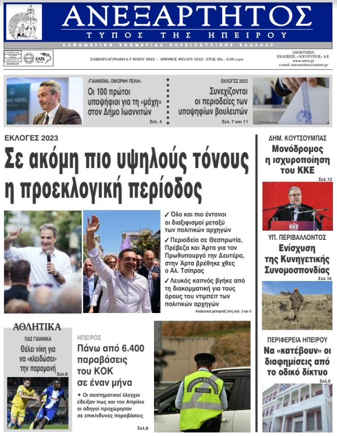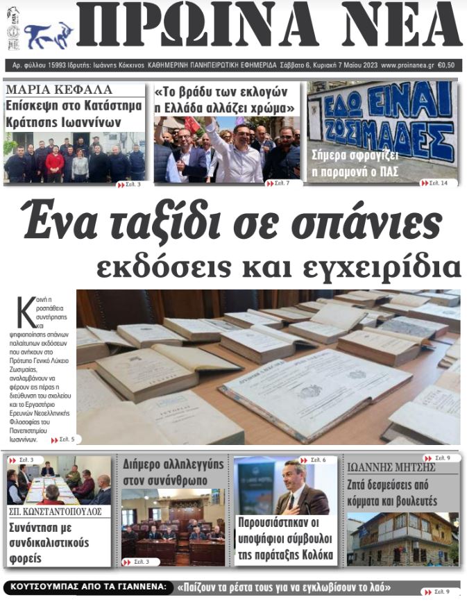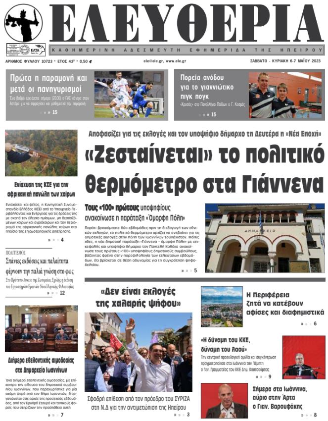 ΑρχικήTOP STORIES TOP STORIESΗΠΕΙΡΟΣ Τα πρωτοσέλιδα των γιαννιώτικων εφημερίδων 06.05.2023 1298 FacebookTwitterWhatsAppEmailΤυπώνωViber Διαβάστε στα πρωτοσέλιδα των γιαννιώτικων εφημερίδων 6-7 Μαΐου TagsΓΙΑΝΝΙΩΤΙΚΕΣ ΕΦΗΜΕΡΙΔΕΣΠΡΩΤΟΣΕΛΙΔΑ FacebookTwitterWhatsAppEmailΤυπώνωViber Προηγούμενο άρθροΣήμερα σφραγίζει την παραμονή ο ΠΑΣΕπόμενο άρθροΤα του Καίσαρος ΣΧΕΤΙΚΑ ΑΡΘΡΑ Τα πρωτοσέλιδα των γιαννιώτικων εφημερίδων TOP STORIES 21.11.2025 Τα πρωτοσέλιδα των γιαννιώτικων εφημερίδων TOP STORIES 20.11.2025 Τα πρωτοσέλιδα των γιαννιώτικων εφημερίδων ΗΠΕΙΡΟΣ 19.11.2025 Τα πρωτοσέλιδα των γιαννιώτικων εφημερίδων ΗΠΕΙΡΟΣ 18.11.2025 Τα πρωτοσέλιδα των γιαννιώτικων εφημερίδων ΗΠΕΙΡΟΣ 15.11.2025 Τα πρωτοσέλιδα των γιαννιώτικων εφημερίδων ΗΠΕΙΡΟΣ 14.11.2025 ΣΤΗΝ ΙΔΙΑ ΚΑΤΗΓΟΡΙΑ Ημέρα Ενόπλων Δυνάμεων με αποκαλυπτήρια προτομών ΗΠΕΙΡΟΣ 21.11.2025 Έρευνες για φόλες στα Τζουμέρκα μετά τον θάνατο κυνηγετικών σκύλων ΗΠΕΙΡΟΣ 21.11.2025 Σε δημόσια πρόσκληση για την αξιοποίηση του Ξενία Ηγουμενίτσας προχωρά η ΕΤΑΔ ΗΠΕΙΡΟΣ 21.11.2025 Ήχησε το «112» στα Ιωάννινα ΗΠΕΙΡΟΣ 21.11.2025 Υπερχείλιση του Αράχθου στην Πλάκα – Φερτά υλικά κάλυψαν τη γέφυρα Μπέλεϋ ΗΠΕΙΡΟΣ 21.11.2025 Σε κατάσταση έκτακτης ανάγκης Ζηρός, Ζαγόρι και Φιλιάτες ΗΠΕΙΡΟΣ 21.11.2025 ΜΗ ΧΑΣΕΤΕ Ημέρα Ενόπλων Δυνάμεων με αποκαλυπτήρια προτομών Ήχησε το «112» στα Ιωάννινα Υπερχείλιση του Αράχθου στην Πλάκα – Φερτά υλικά κάλυψαν τη γέφυρα Μπέλεϋ Σε κατάσταση έκτακτης ανάγκης Ζηρός, Ζαγόρι και Φιλιάτες Βροχές ενάμιση μήνα μέσα σε 48 ώρες στην Ήπειρο ΔΗΜΟΦΙΛΗ