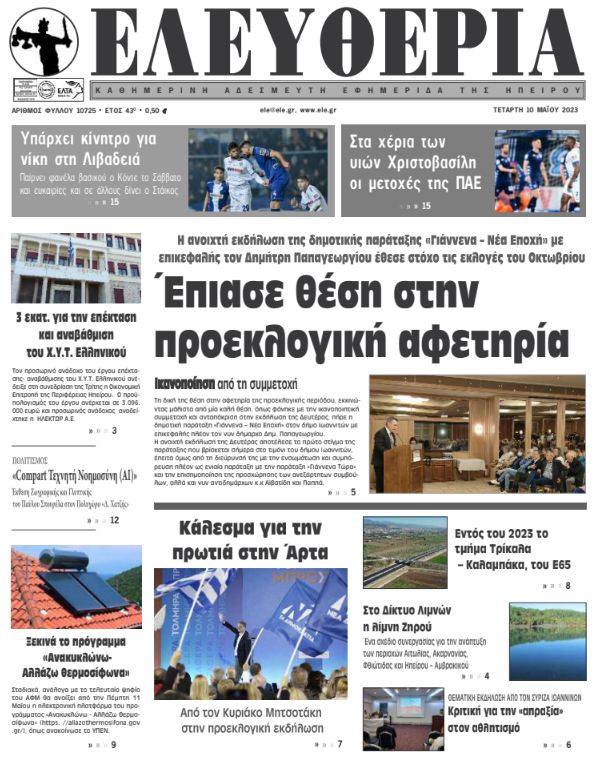 ΑρχικήΕΙΔΗΣΕΙΣΗΠΕΙΡΟΣ ΗΠΕΙΡΟΣ Τα πρωτοσέλιδα των γιαννιώτικων εφημερίδων 10.05.2023 1262 FacebookTwitterWhatsAppEmailΤυπώνωViber Διαβάστε στα πρωτοσέλιδα των γιαννιώτικων εφημερίδων της Τετάρτης 10 Μαΐου TagsΓΙΑΝΝΙΩΤΙΚΕΣ ΕΦΗΜΕΡΙΔΕΣΠΡΩΤΟΣΕΛΙΔΑ FacebookTwitterWhatsAppEmailΤυπώνωViber Προηγούμενο άρθροΆρτα: Συνελήφθη ο πατέρας που άφησε το μωρό του να πεθάνει στο αυτοκίνητοΕπόμενο άρθροΤιμή στους αγώνες και την αντίσταση στον ναζισμό ΣΧΕΤΙΚΑ ΑΡΘΡΑ Τα πρωτοσέλιδα των γιαννιώτικων εφημερίδων TOP STORIES 06.11.2025 Τα πρωτοσέλιδα των γιαννιώτικων εφημερίδων ΗΠΕΙΡΟΣ 05.11.2025 Τα πρωτοσέλιδα των γιαννιώτικων εφημερίδων ΗΠΕΙΡΟΣ 04.11.2025 Τα πρωτοσέλιδα των γιαννιώτικων εφημερίδων TOP STORIES 01.11.2025 Τα πρωτοσέλιδα των γιαννιώτικων εφημερίδων ΗΠΕΙΡΟΣ 31.10.2025 Τα πρωτοσέλιδα των γιαννιώτικων εφημερίδων ΗΠΕΙΡΟΣ 30.10.2025 ΣΤΗΝ ΙΔΙΑ ΚΑΤΗΓΟΡΙΑ Διαμαρτυρία των εργαζόμενων σε τουρισμό – επισιτισμό ΗΠΕΙΡΟΣ 06.11.2025 Καταγγελία της ΕΙΝΗ για τα «εντέλλεσθε» της 6ης ΥΠΕ ΗΠΕΙΡΟΣ 06.11.2025 Τα πρωτοσέλιδα των γιαννιώτικων εφημερίδων TOP STORIES 06.11.2025 «Άναψε πράσινο» για Σωφρονιστικό Κατάστημα στους Φιλιάτες ΗΠΕΙΡΟΣ 05.11.2025 206 πυρκαγιές με 61.000 καμένα στρέμματα στην Ήπειρο ΗΠΕΙΡΟΣ 05.11.2025 Κινητοποιήσεις για τα ΕΛΤΑ σε Μέτσοβο – Καναλάκι TOP STORIES 05.11.2025 ΜΗ ΧΑΣΕΤΕ Τα πρωτοσέλιδα των γιαννιώτικων εφημερίδων «Άναψε πράσινο» για Σωφρονιστικό Κατάστημα στους Φιλιάτες 206 πυρκαγιές με 61.000 καμένα στρέμματα στην Ήπειρο Κινητοποιήσεις για τα ΕΛΤΑ σε Μέτσοβο – Καναλάκι Δήμος Ζίτσας: Απόφαση σταθμός της δημοτική αρχής για τη συνέχιση της λειτουργίας των ΕΛ.ΤΑ. ΔΗΜΟΦΙΛΗ Τα πρωτοσέλιδα των γιαννιώτικων εφημερίδων Τα του Καίσαρος… Καταγγελία της ΕΙΝΗ για τα «εντέλλεσθε» της 6ης ΥΠΕ Εκδήλωση στην Ήπειρο για την Ευρωπαϊκή Ημέρα Γλωσσών Διαμαρτυρία των εργαζόμενων σε τουρισμό – επισιτισμό