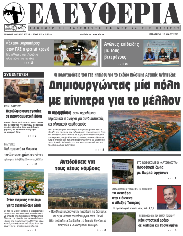 ΑρχικήΕΙΔΗΣΕΙΣΗΠΕΙΡΟΣ ΗΠΕΙΡΟΣ Τα πρωτοσέλιδα των γιαννιώτικων εφημερίδων 12.05.2023 1299 FacebookTwitterWhatsAppEmailΤυπώνωViber Διαβάστε στα πρωτοσέλιδα των γιαννιώτικων εφημερίδων της Παρασκευής 12 Μαΐου TagsΓΙΑΝΝΙΩΤΙΚΕΣ ΕΦΗΜΕΡΙΔΕΣΠΡΩΤΟΣΕΛΙΔΑ FacebookTwitterWhatsAppEmailΤυπώνωViber Προηγούμενο άρθροΕκλογές 2023: Δυνατότητα ψήφου και με ταυτοποίηση από το wallet του κινητούΕπόμενο άρθροΣε χωριά του Δήμου Δωδώνης η Μ. Κεφάλα ΣΧΕΤΙΚΑ ΑΡΘΡΑ Τα πρωτοσέλιδα των γιαννιώτικων εφημερίδων TOP STORIES 06.11.2025 Τα πρωτοσέλιδα των γιαννιώτικων εφημερίδων ΗΠΕΙΡΟΣ 05.11.2025 Τα πρωτοσέλιδα των γιαννιώτικων εφημερίδων ΗΠΕΙΡΟΣ 04.11.2025 Τα πρωτοσέλιδα των γιαννιώτικων εφημερίδων TOP STORIES 01.11.2025 Τα πρωτοσέλιδα των γιαννιώτικων εφημερίδων ΗΠΕΙΡΟΣ 31.10.2025 Τα πρωτοσέλιδα των γιαννιώτικων εφημερίδων ΗΠΕΙΡΟΣ 30.10.2025 ΣΤΗΝ ΙΔΙΑ ΚΑΤΗΓΟΡΙΑ Δύο ταυτοποιήσεις για κλοπές χρυσαφικών στην Άρτα ΗΠΕΙΡΟΣ 06.11.2025 Επιστροφή των εργαζομένων του «Γαλαξία» στις θέσεις τους ΗΠΕΙΡΟΣ 06.11.2025 Διαμαρτυρία των εργαζόμενων σε τουρισμό – επισιτισμό ΗΠΕΙΡΟΣ 06.11.2025 Καταγγελία της ΕΙΝΗ για τα «εντέλλεσθε» της 6ης ΥΠΕ ΗΠΕΙΡΟΣ 06.11.2025 Τα πρωτοσέλιδα των γιαννιώτικων εφημερίδων TOP STORIES 06.11.2025 «Άναψε πράσινο» για Σωφρονιστικό Κατάστημα στους Φιλιάτες ΗΠΕΙΡΟΣ 05.11.2025 ΜΗ ΧΑΣΕΤΕ Νέος Κώδικας Δήμων και ΔΕΥΑ στο συνέδριο της ΚΕΔΕ Υπεγράφη συμφωνία Energean, ExxonMobil και Helleniq Energy για γεώτρηση υδρογονανθράκων στο Ιόνιο Τα πρωτοσέλιδα των γιαννιώτικων εφημερίδων «Άναψε πράσινο» για Σωφρονιστικό Κατάστημα στους Φιλιάτες 206 πυρκαγιές με 61.000 καμένα στρέμματα στην Ήπειρο ΔΗΜΟΦΙΛΗ Βοσνία: Στους 12 οι νεκροί της πυρκαγιάς σε οίκο ευγηρίας Πειρατεία σε ελληνόκτητο τάνκερ, ανοιχτά της Σομαλίας Καναδάς: θα θανατωθούν 300 στρουθοκάμηλοι που προσβλήθηκαν από τη γρίπη των πτηνών Παρίστανε την αστυνομικό και απέσπασε 100.000 ευρώ από 57χρονη Δύο ταυτοποιήσεις για κλοπές χρυσαφικών στην Άρτα